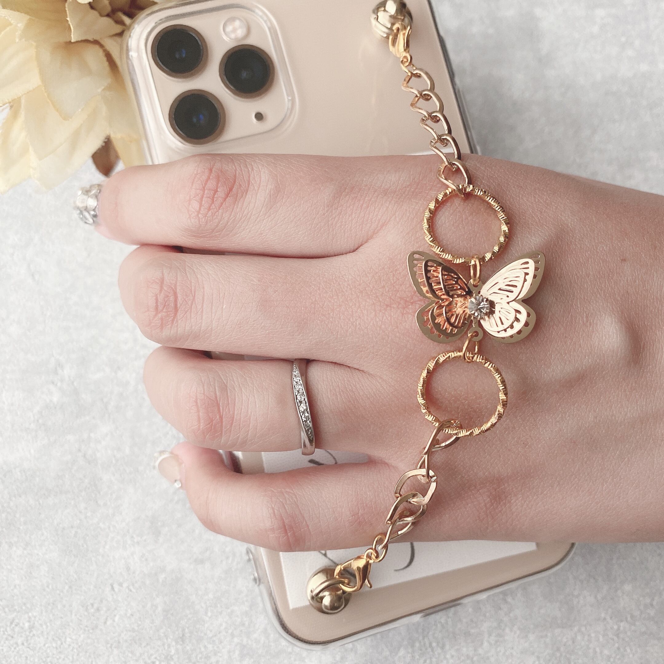 【iPhone】3枚羽蝶々のキーリングハンガー(ゴールド)