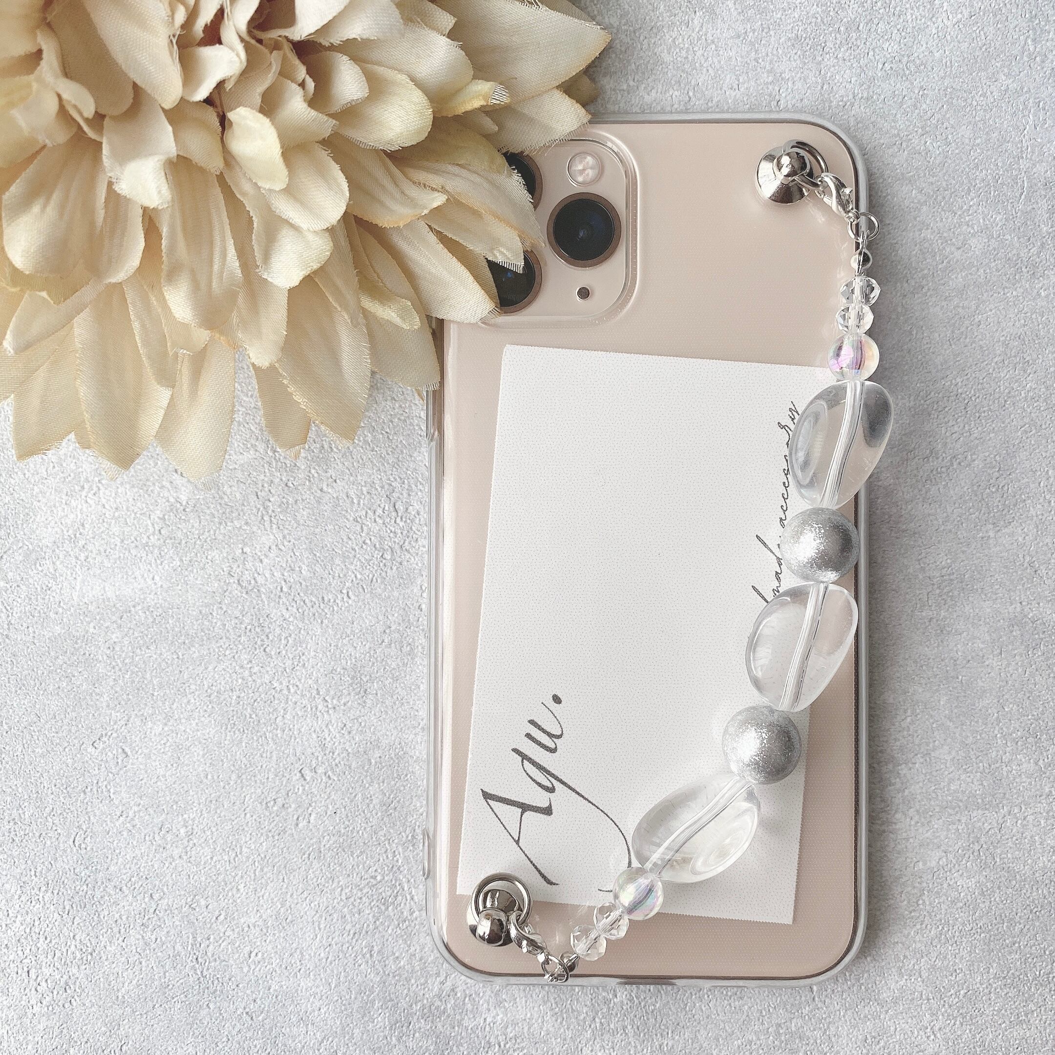 【iPhone以外】クリアストーンとシルバーパールのキーリングハンガー