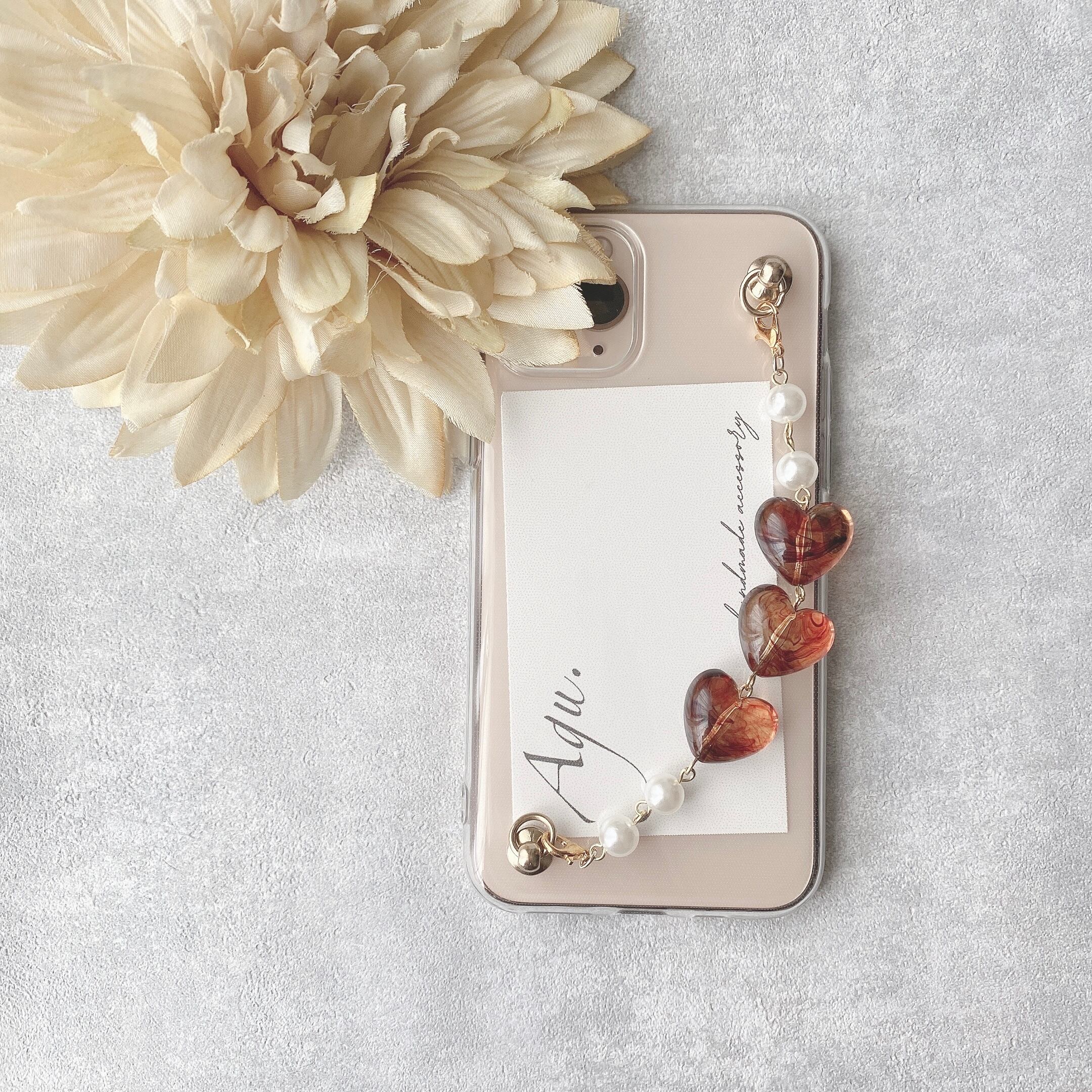【iPhone以外】3連ハートのキーリングハンガー(べっ甲)