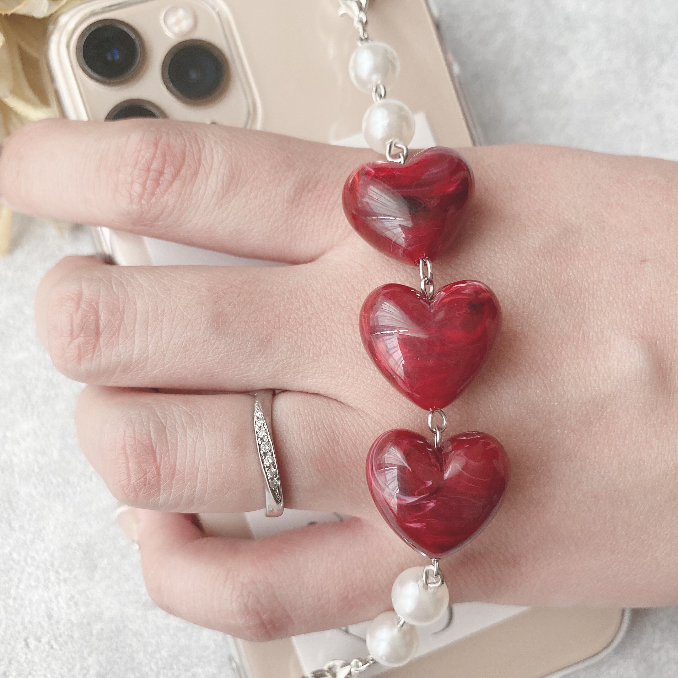 【iPhone】3連ハートのキーリングハンガー(ボルドー)