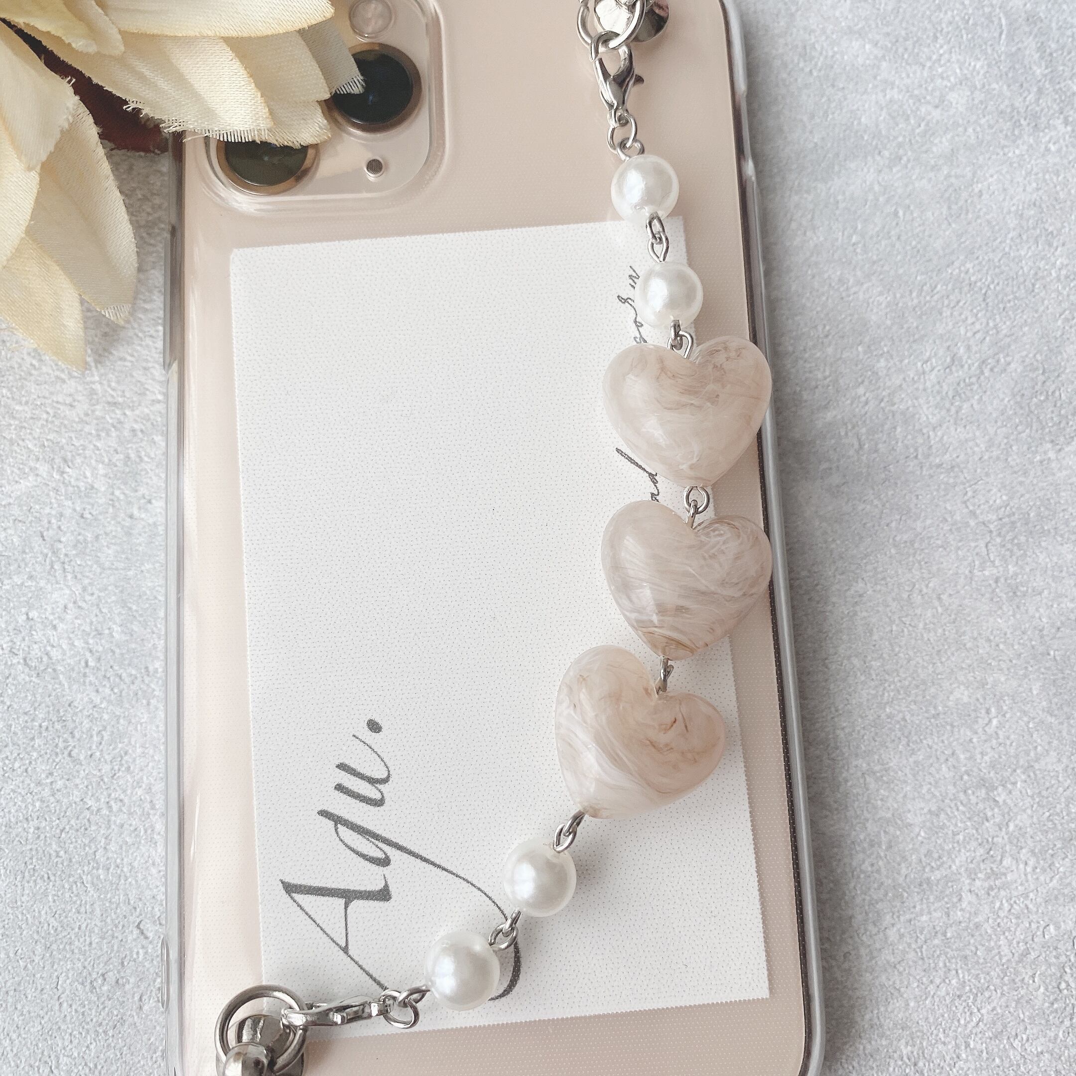 【iPhone以外】3連ハートのキーリングハンガー(ベージュ)