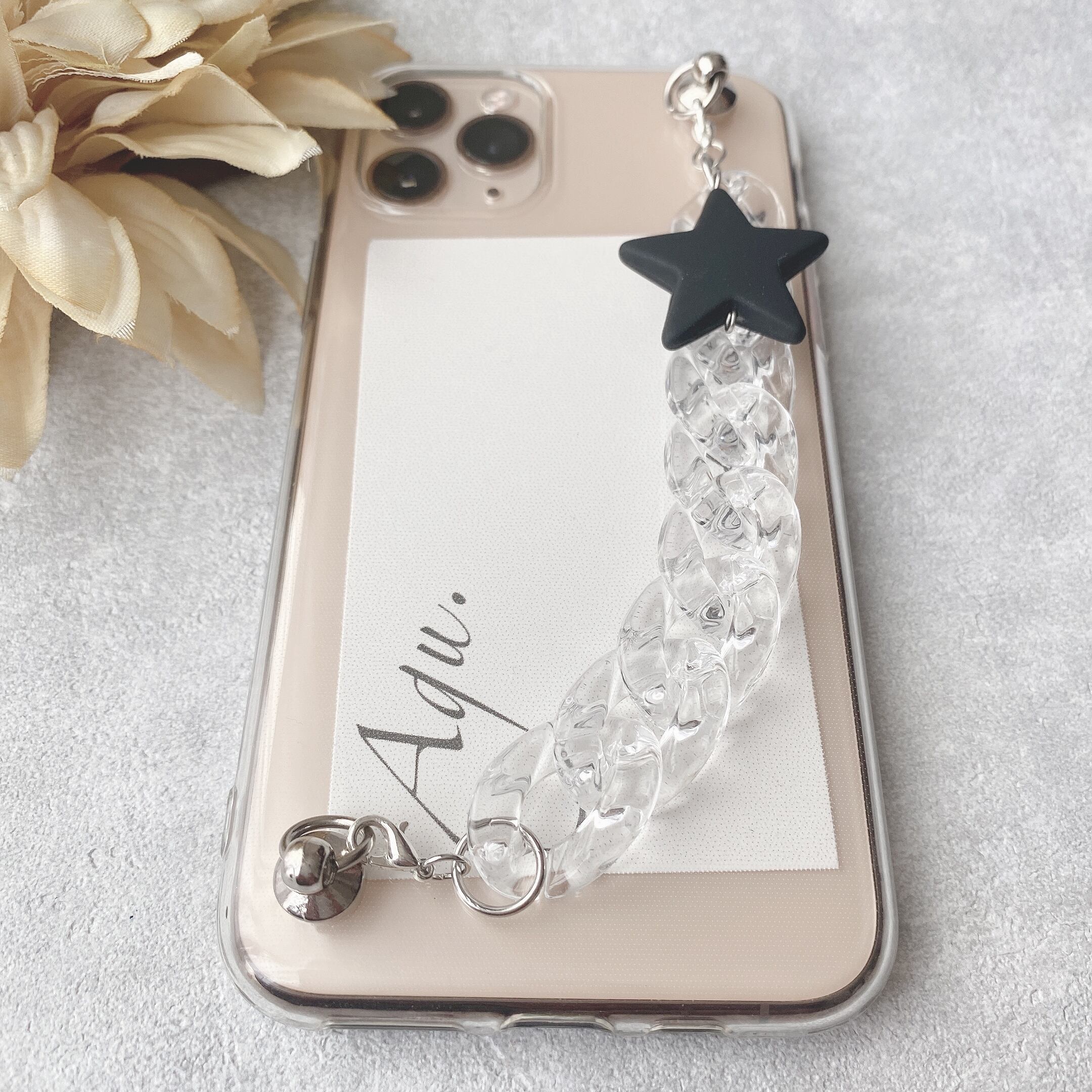 【iPhone以外】ブラックスターとクリアチェーンのキーリングハンガー