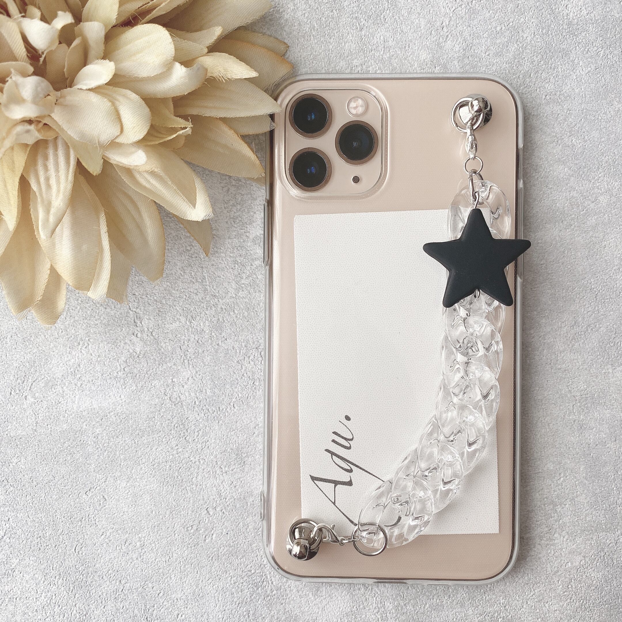 【iPhone】ブラックスターとクリアチェーンのキーリングハンガー