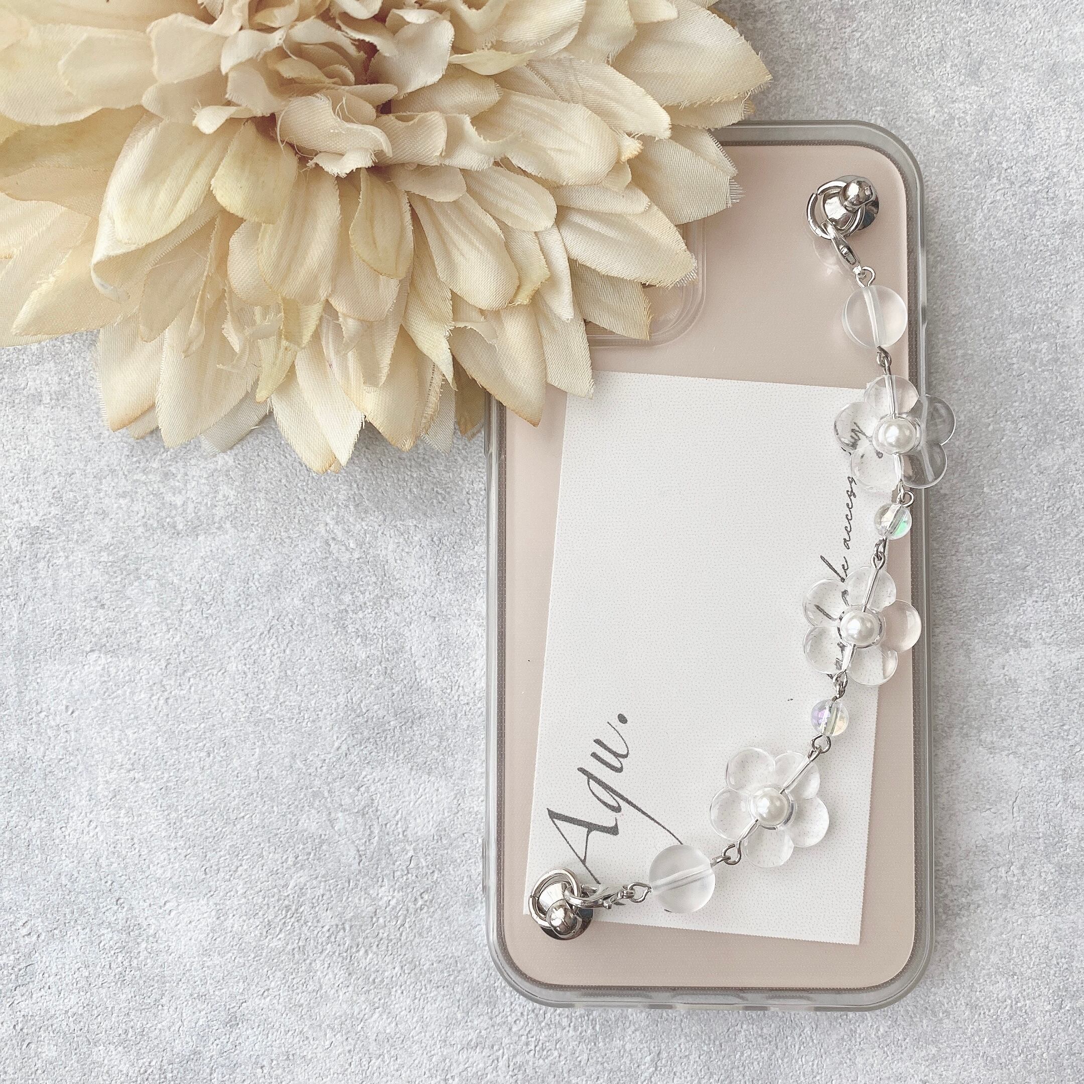 【iPhone】ミニクリアフラワーの3連キーリングハンガー