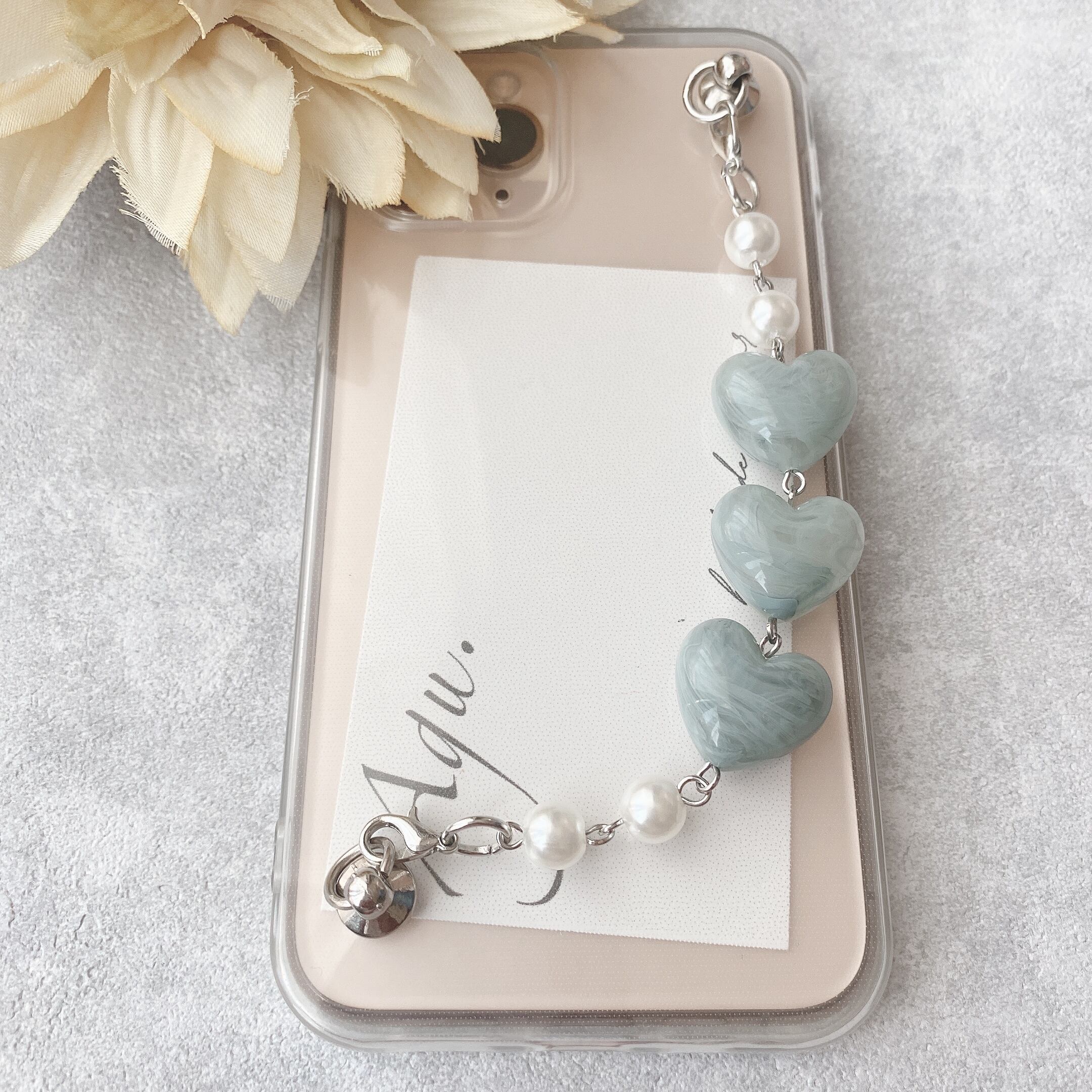 【iPhone以外】3連ハートのキーリングハンガー(くすみブルー)