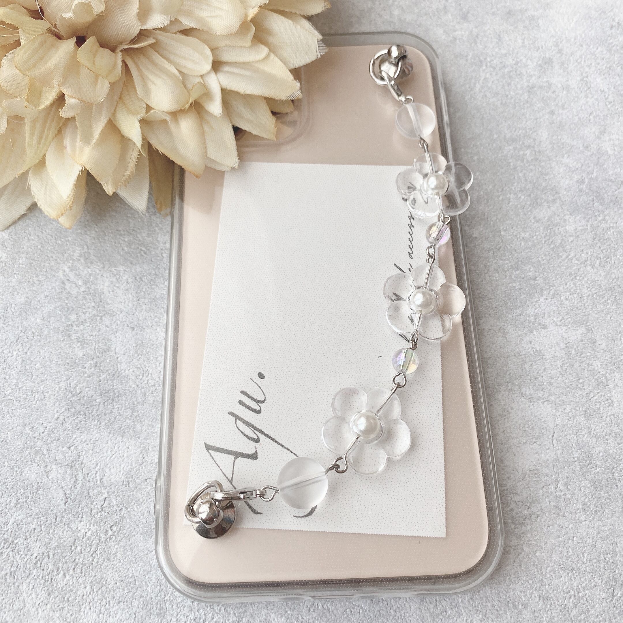 【iPhone以外】ミニクリアフラワーの3連キーリングハンガー