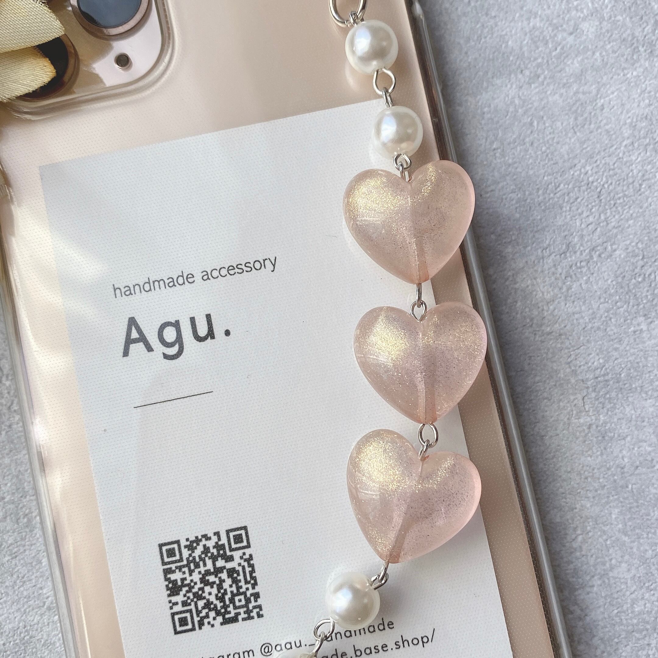 【iPhone】3連ハートのキーリングハンガー(パステルピンク×きらきらラメ)