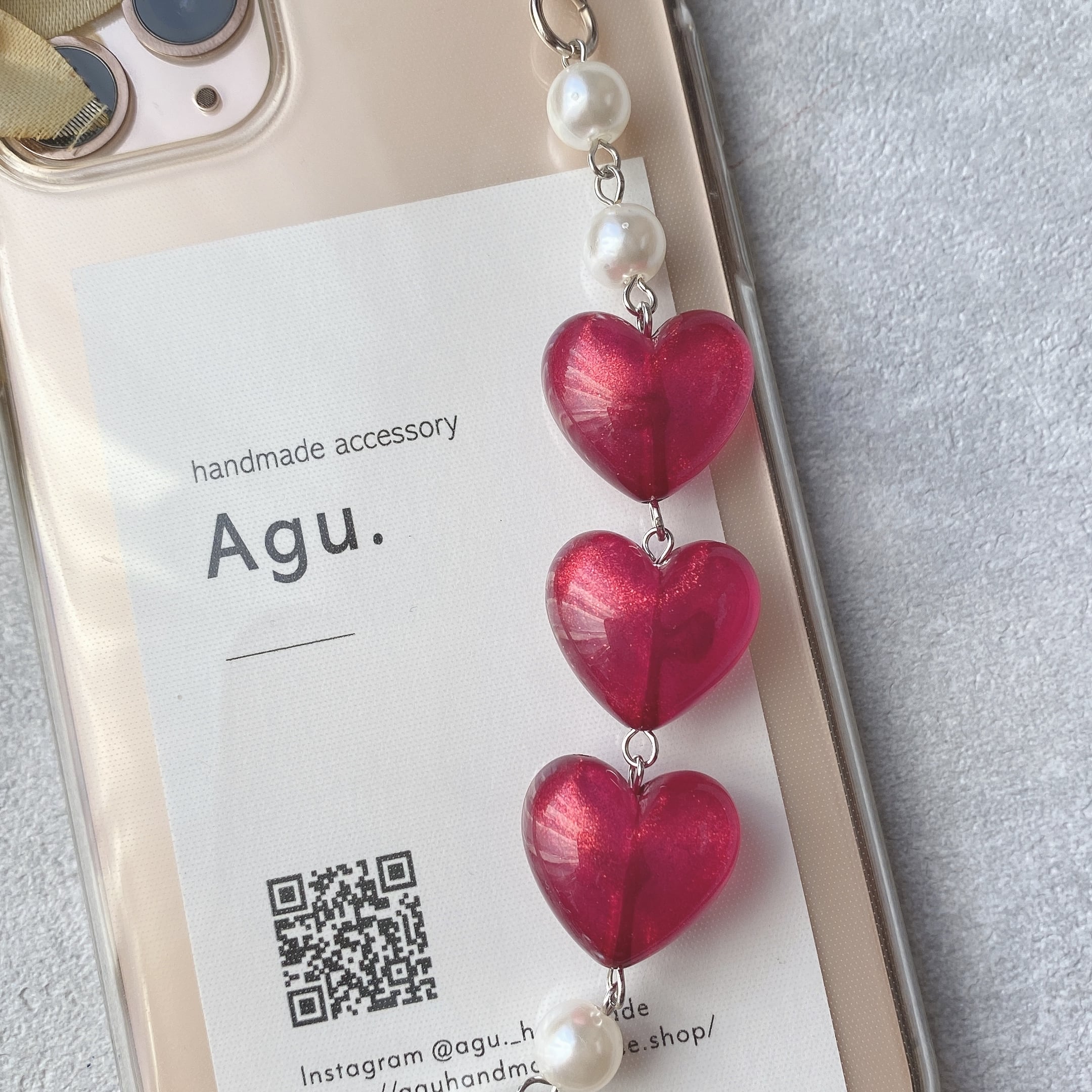 【iPhone】3連ハートのキーリングハンガー(レッド×きらきらラメ)