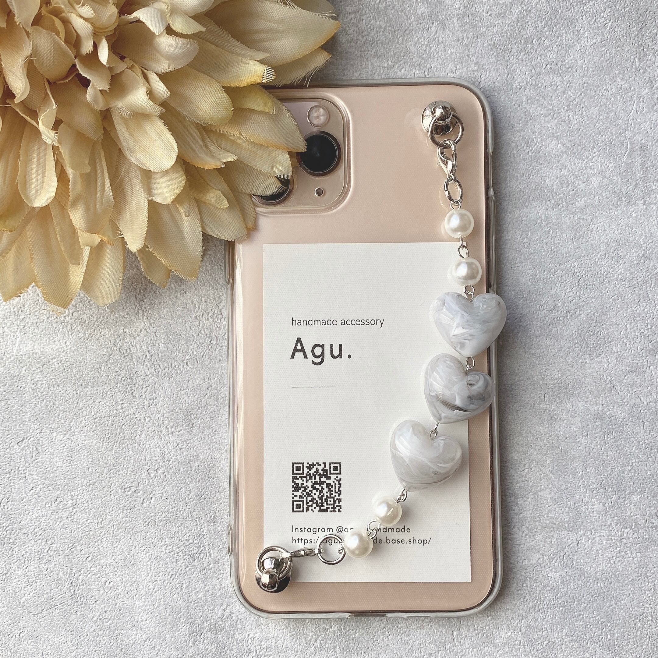 【iPhone】3連ハートのキーリングハンガー(グレー×大理石)
