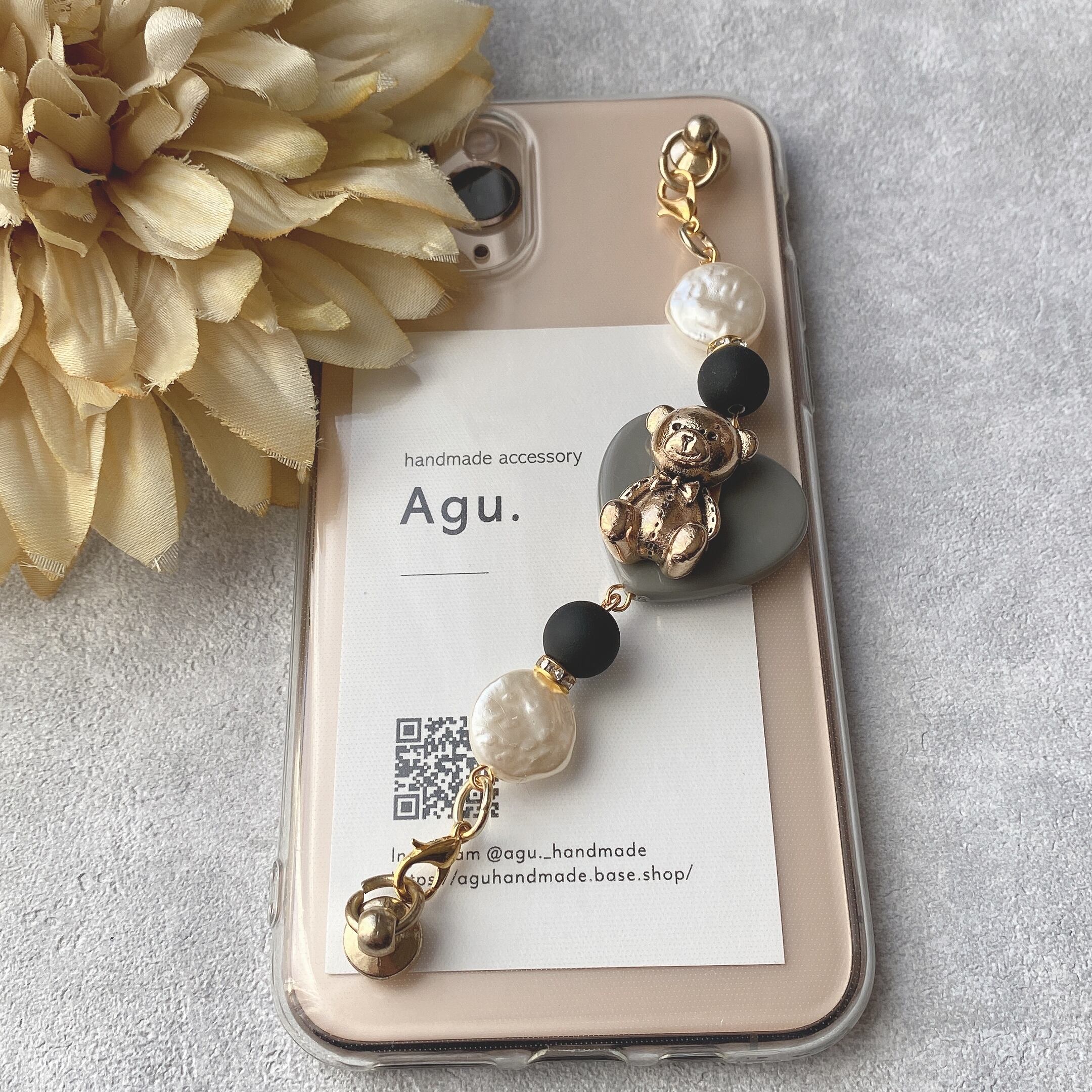 【iPhone以外】ゴールドくまちゃんのキーリングハンガー(グレー)