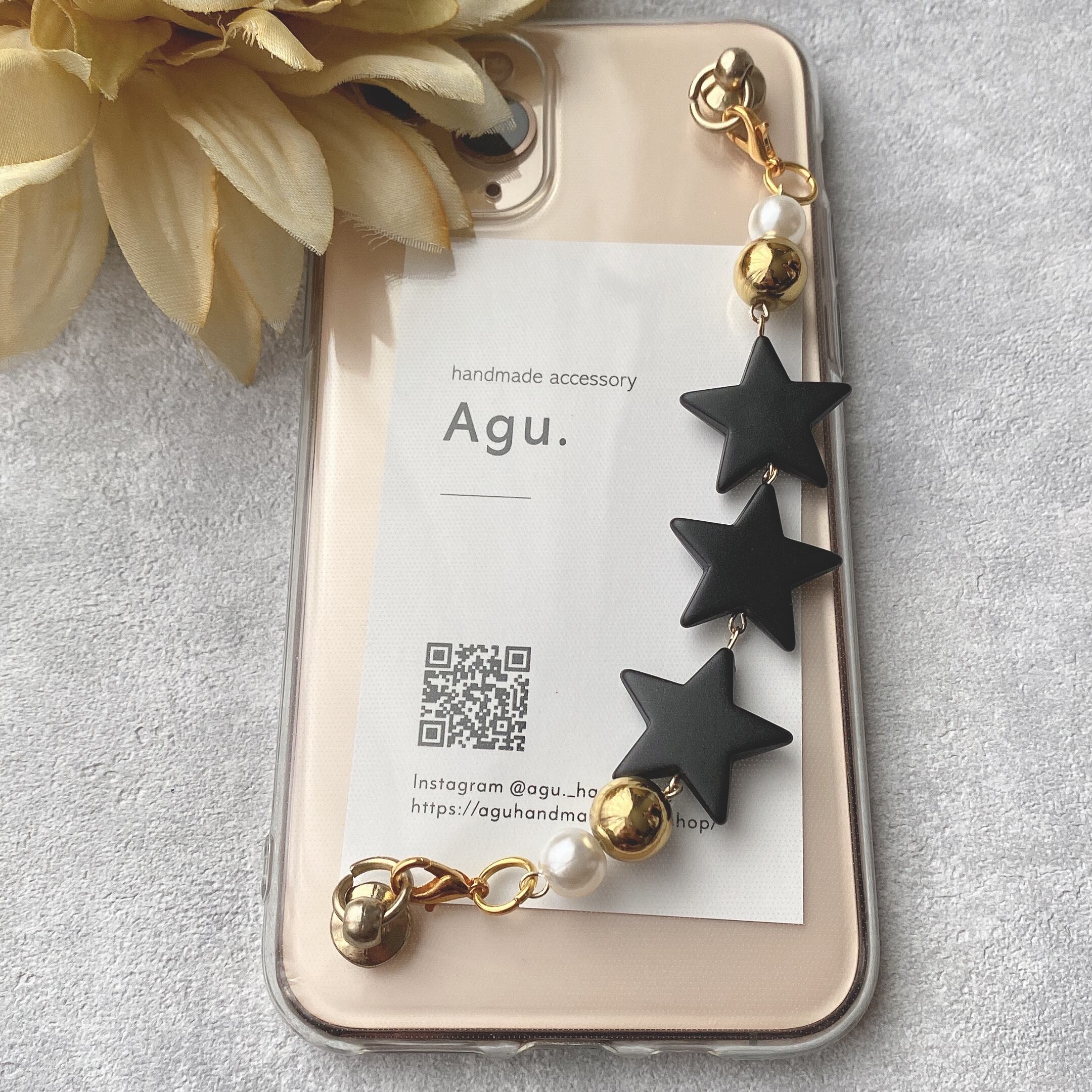 【iPhone以外】ブラックスターチェーンのキーリングハンガー(ゴールド)