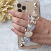 【iPhone】オーロラ蝶々ときらきらハートのキーリングハンガー(パステルブルー)