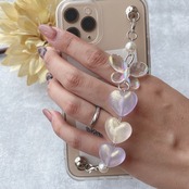【iPhone】オーロラ蝶々ときらきらハートのキーリングハンガー(パステルパープル)