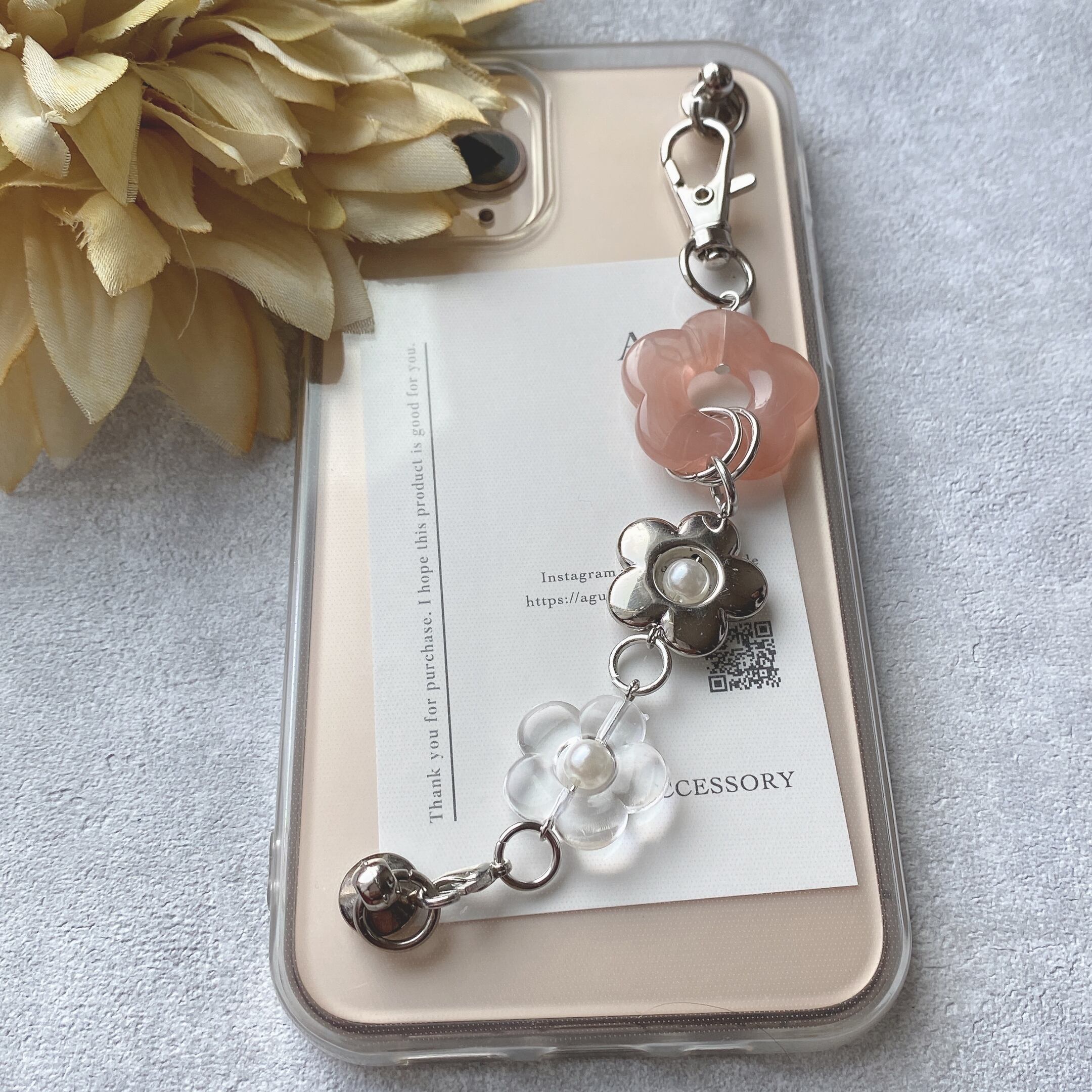 【iPhone】韓国っぽお花のキーリングハンガー(ローズクォーツ)