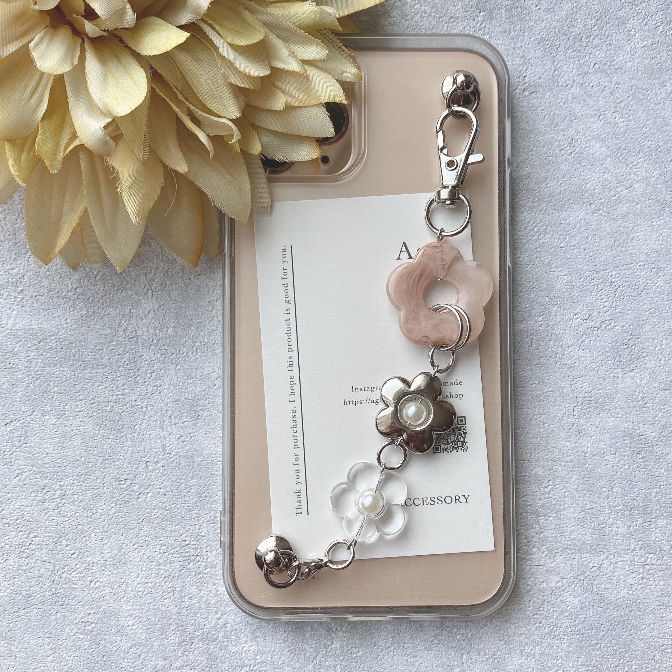 【iPhone以外】韓国っぽお花のキーリングハンガー(ピンクベージュ)