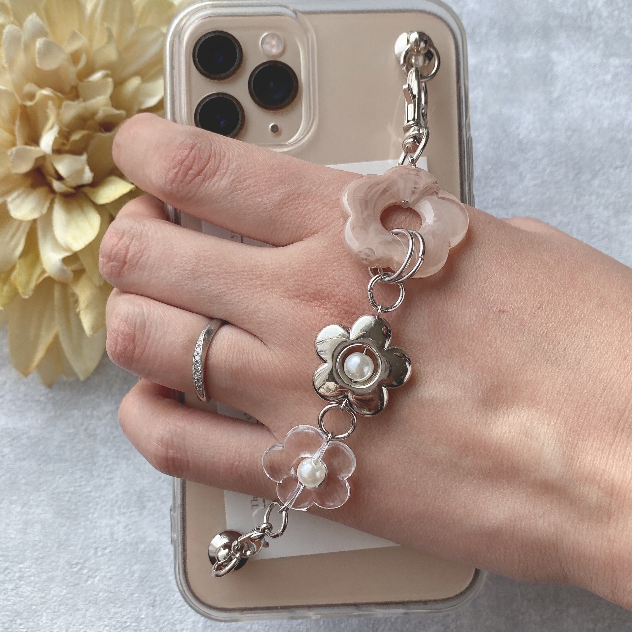 【iPhone】韓国っぽお花のキーリングハンガー(ピンクベージュ)