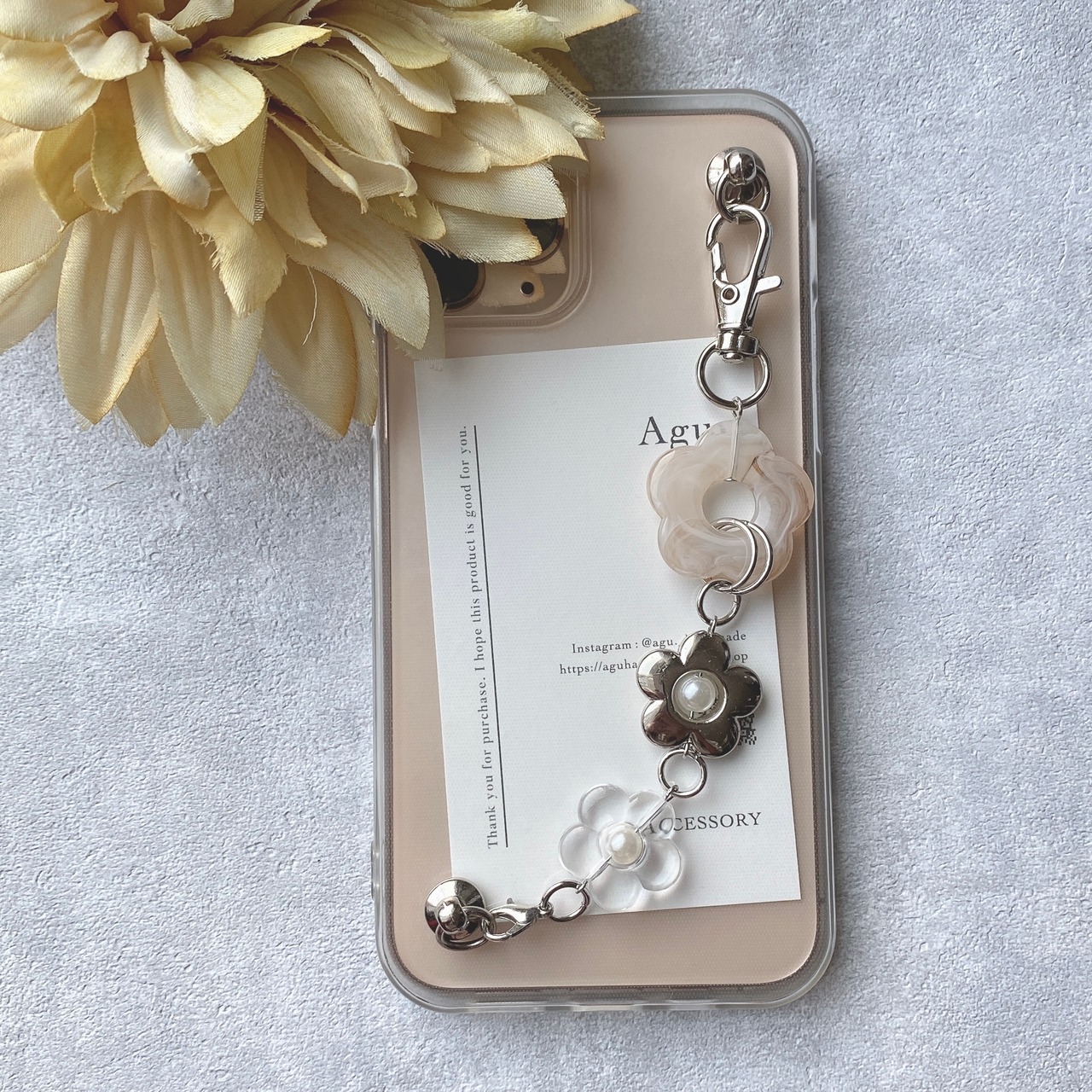 【iPhone】韓国っぽお花のキーリングハンガー(ベージュ)
