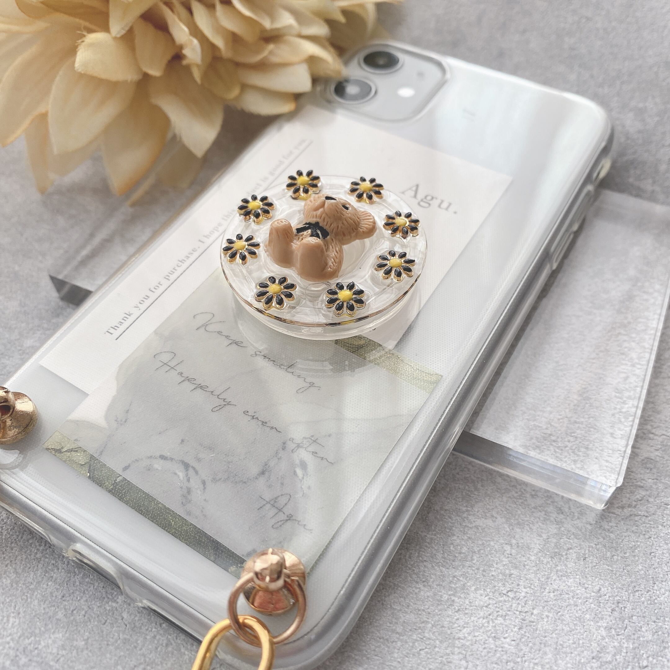 【iPhone】くまちゃん×デイジーのグリップトックケース(ブラック)