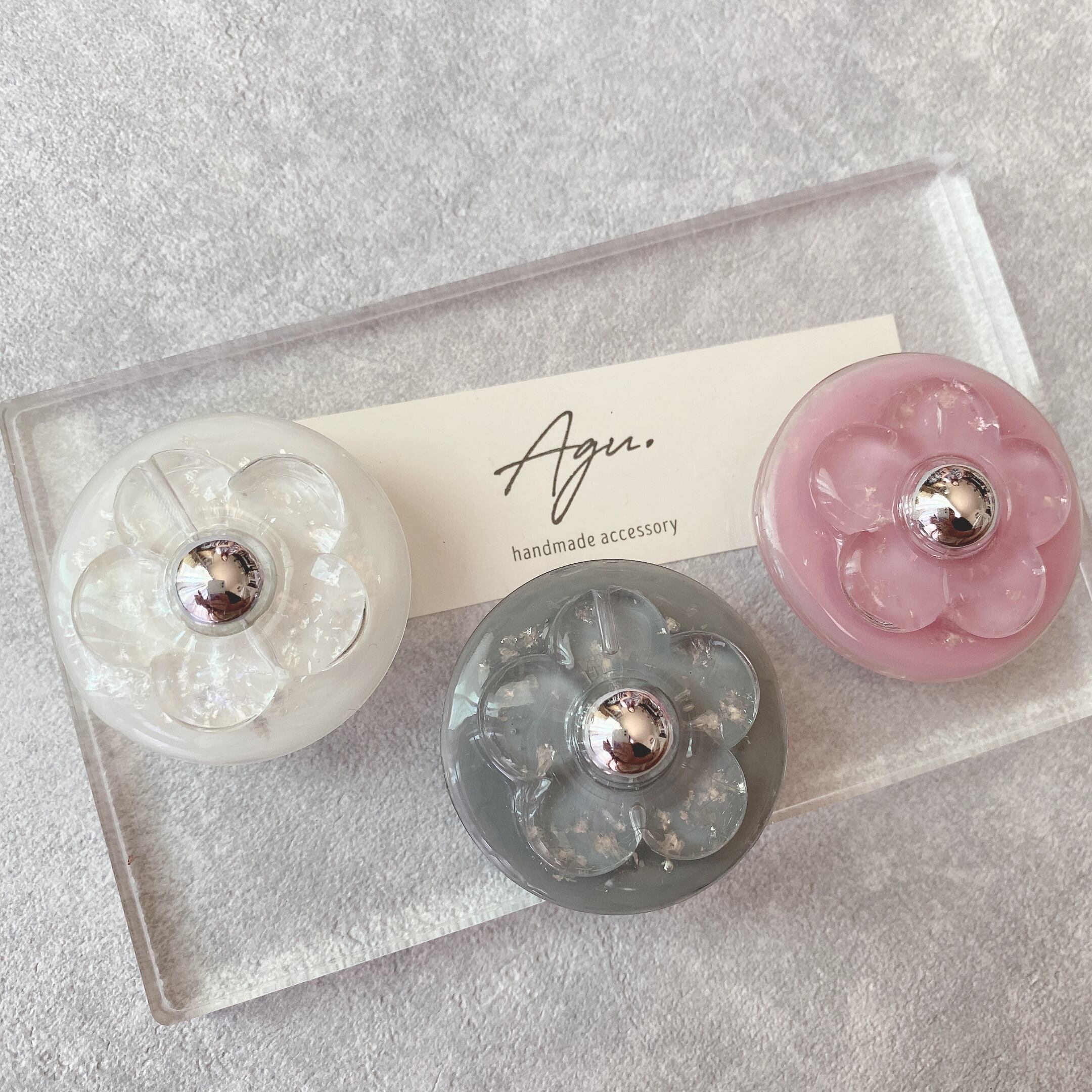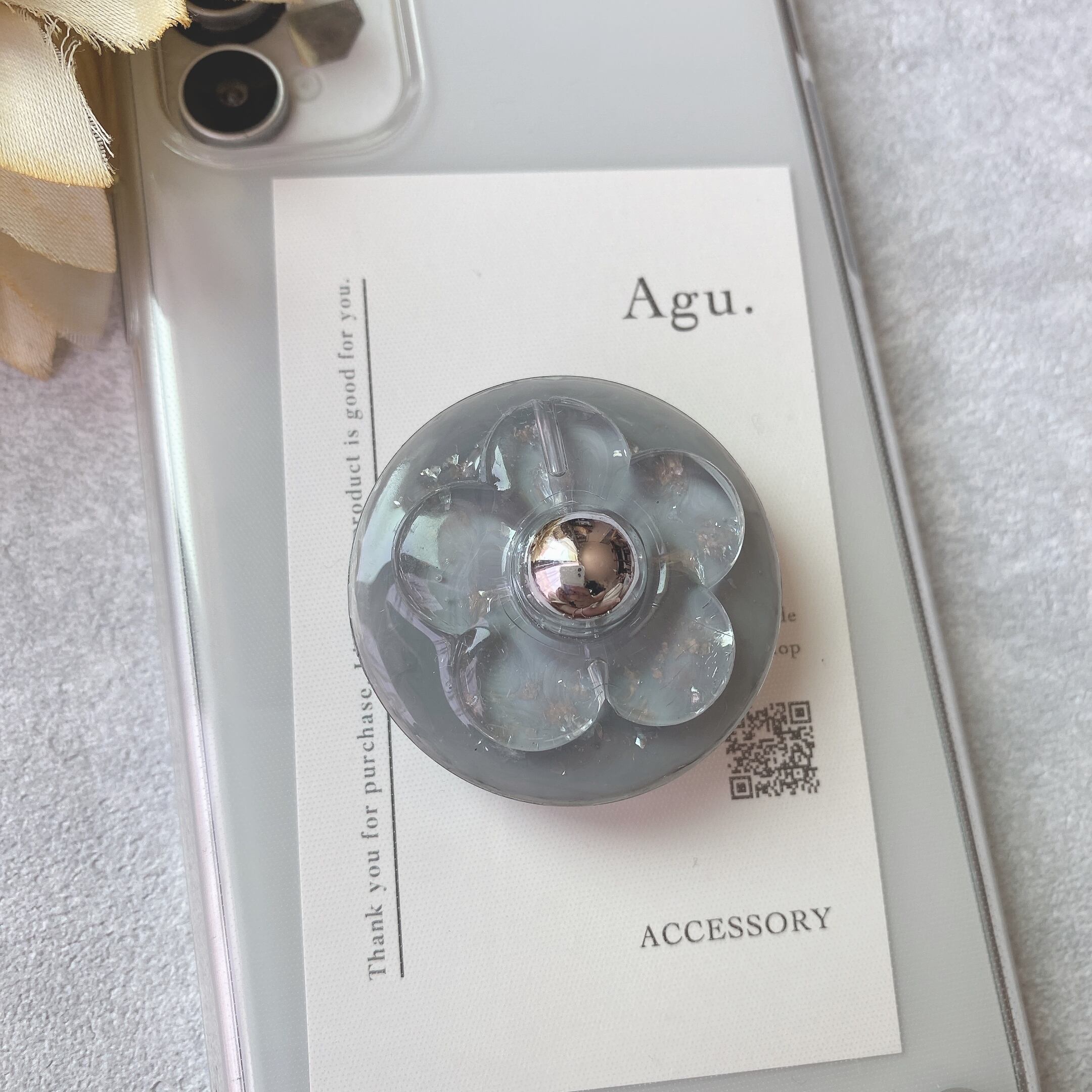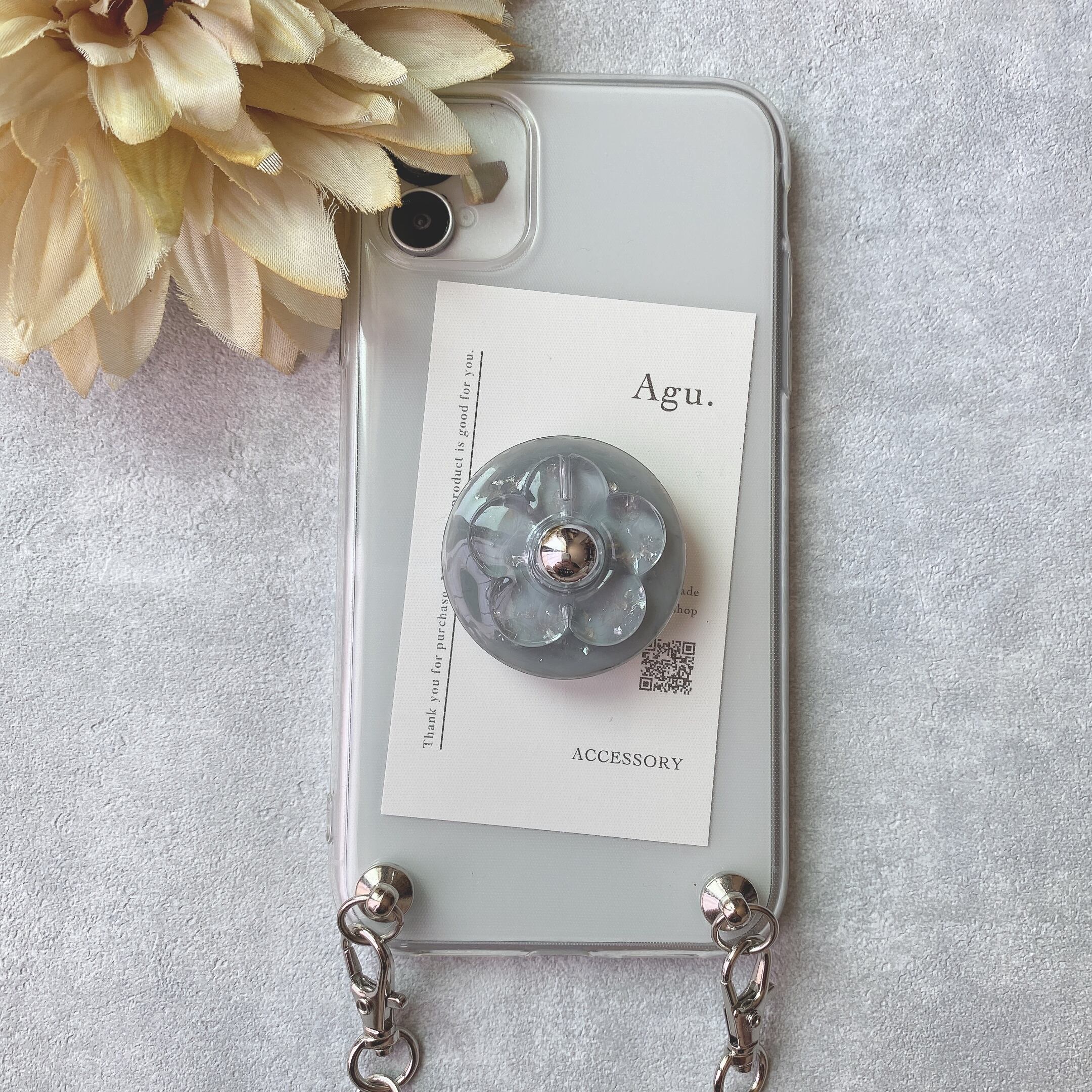 【iPhone以外】クリアフラワーのグリップトックケース(グレー)