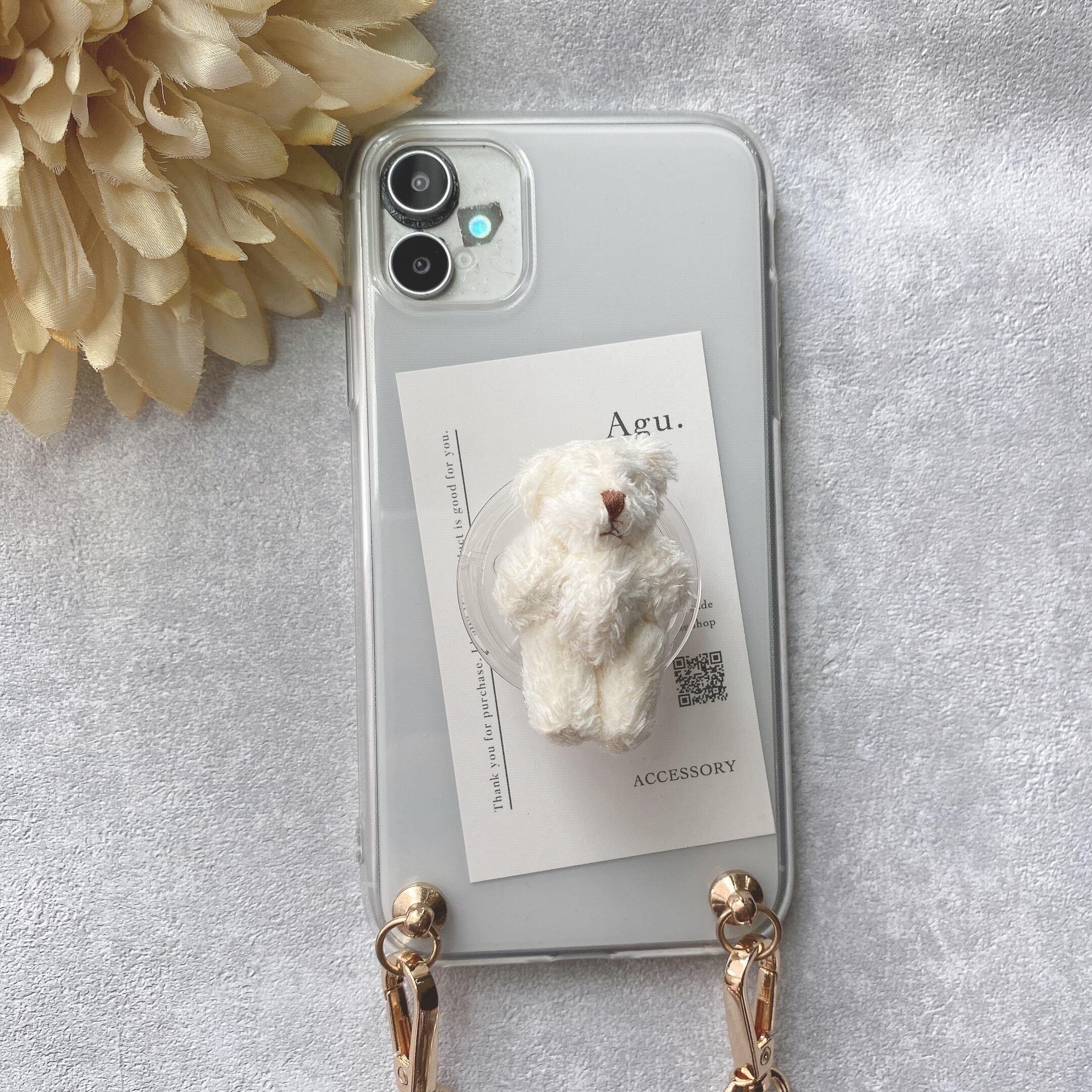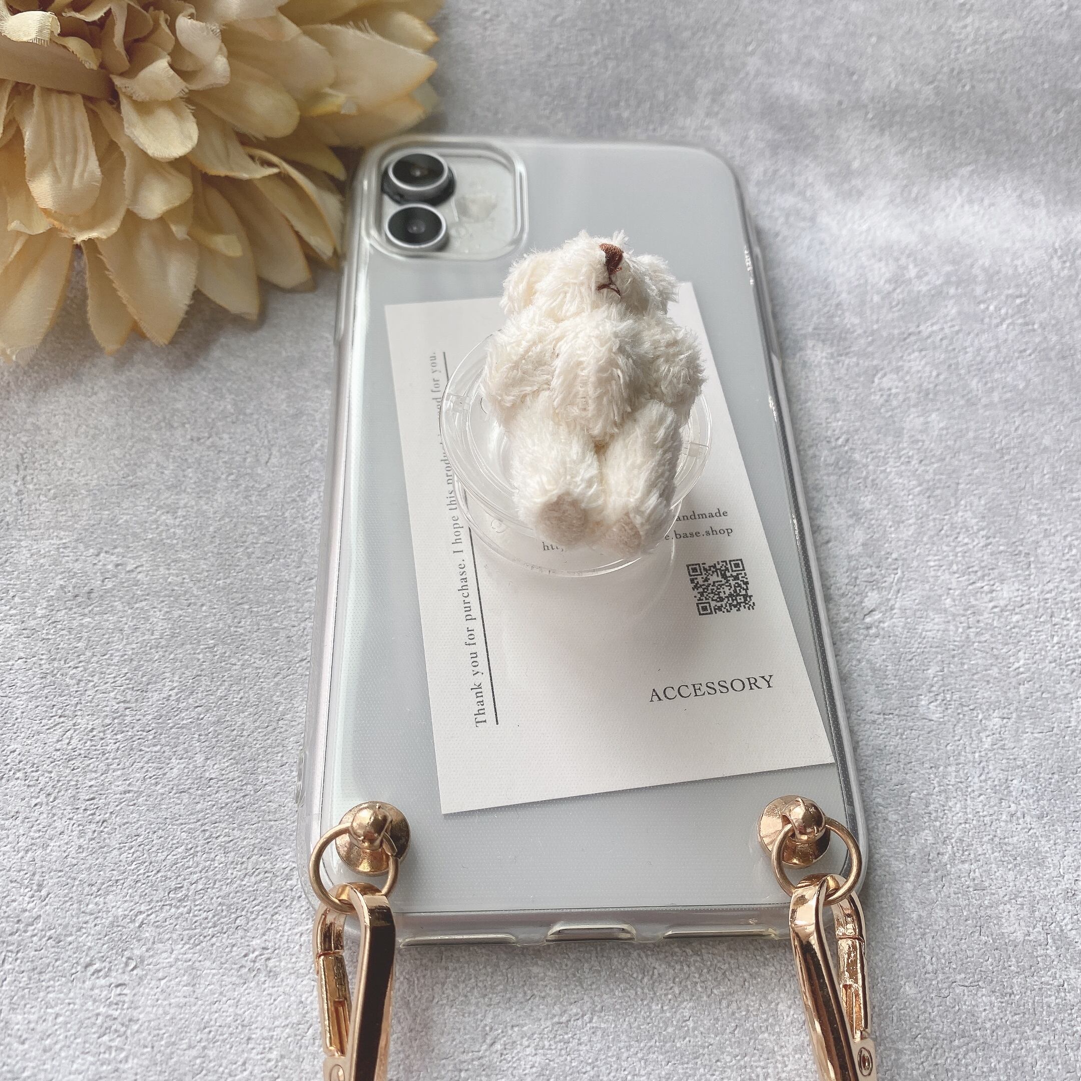【iPhone以外】ミニくまちゃんのグリップトックケース(ホワイト)