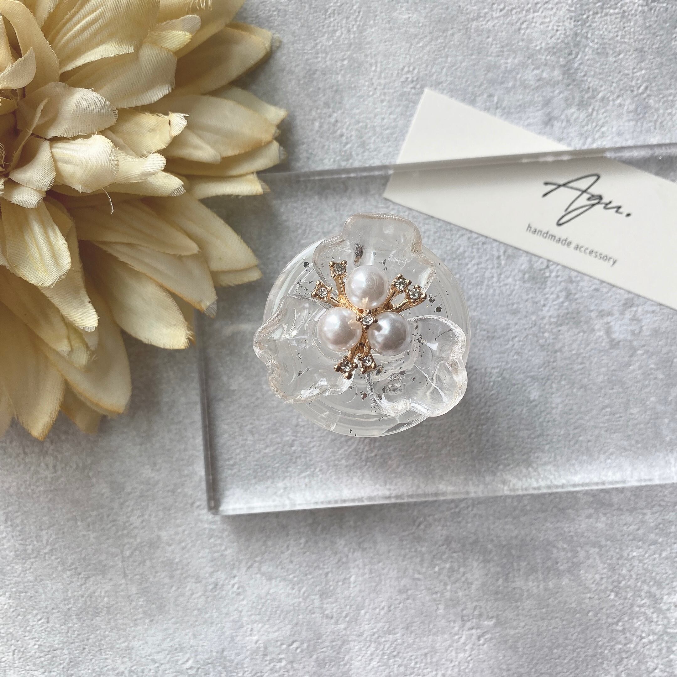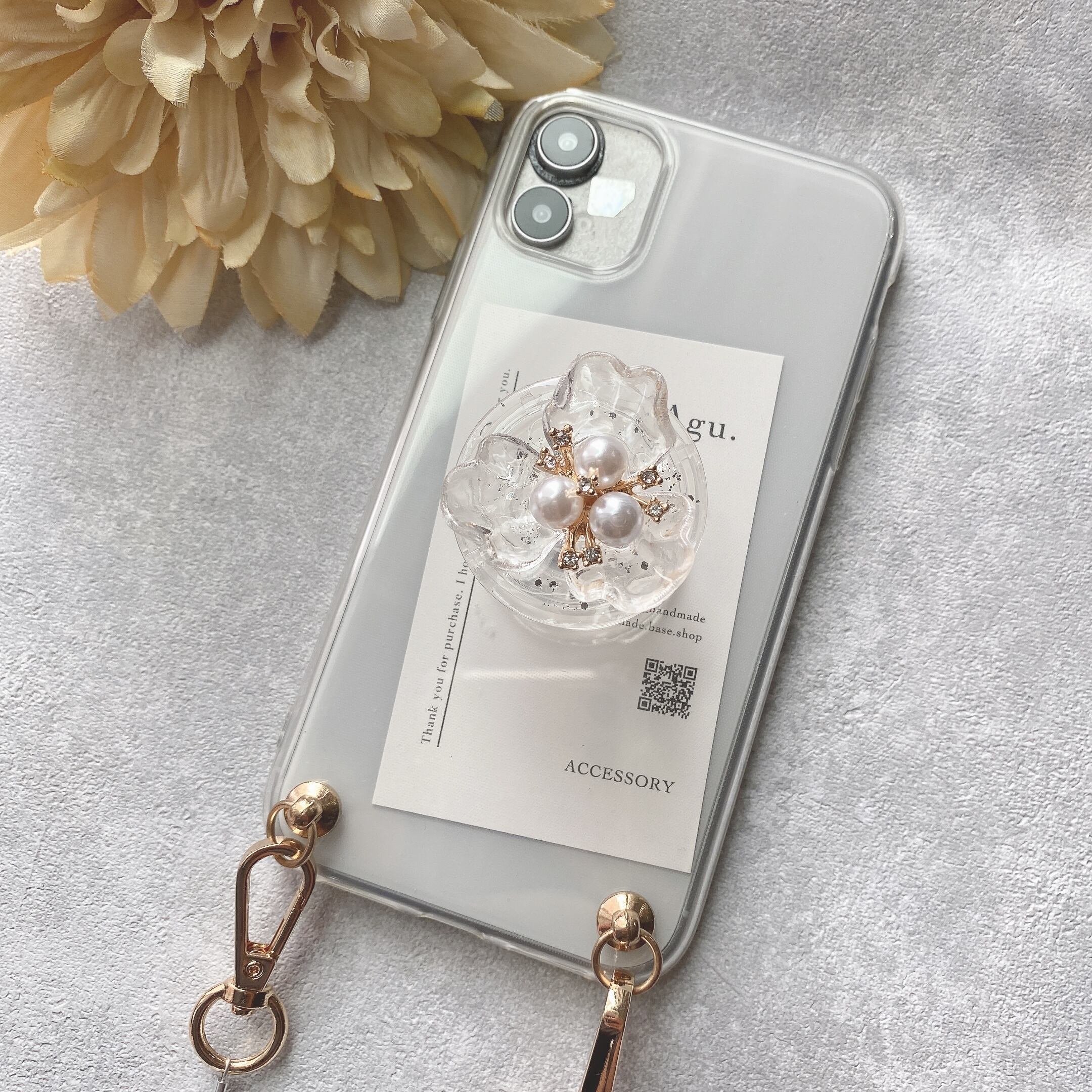 【iPhone以外】3枚花のグリップトックケース(クリア)