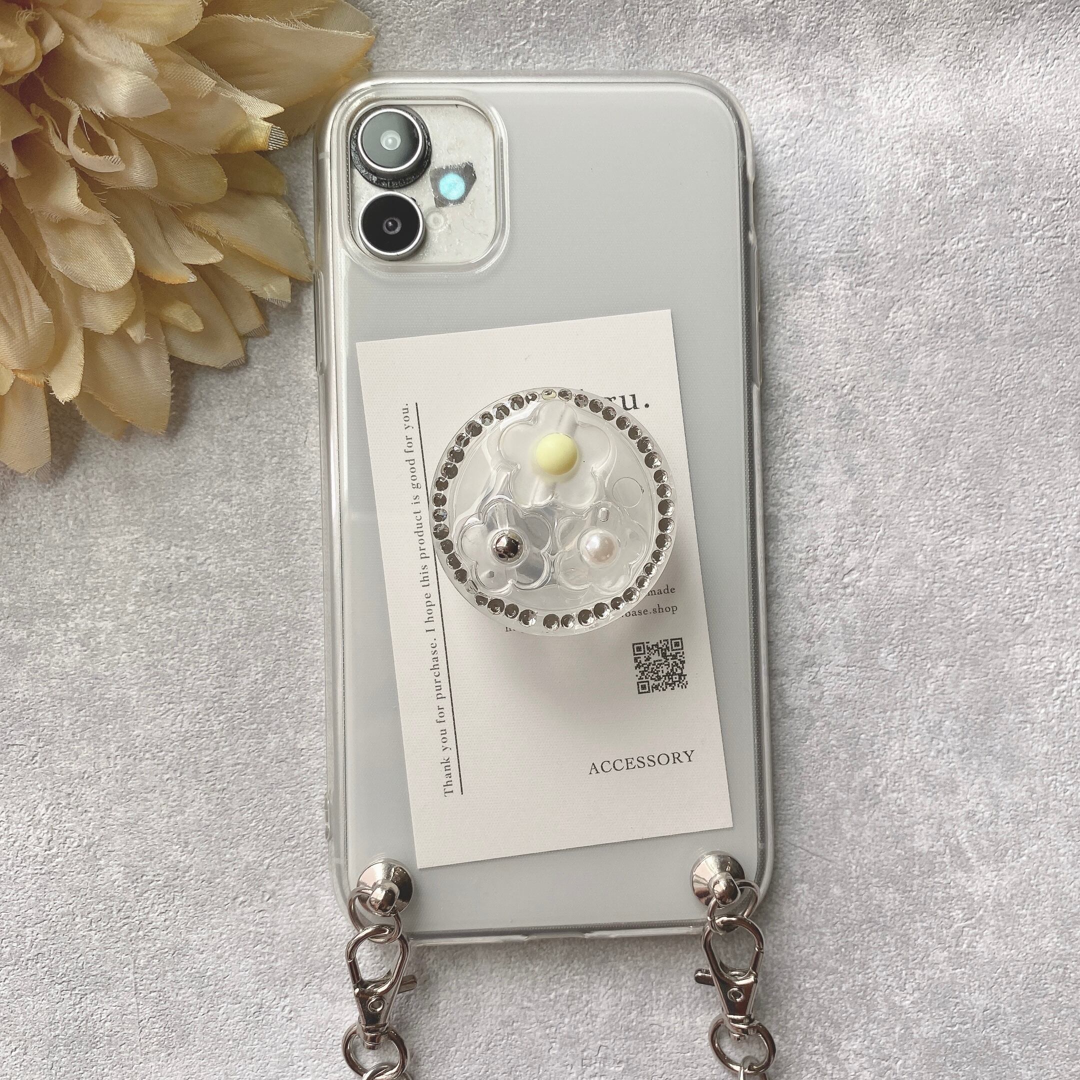 【iPhone以外】すりガラスフラワーのグリップトックケース(イエロー)