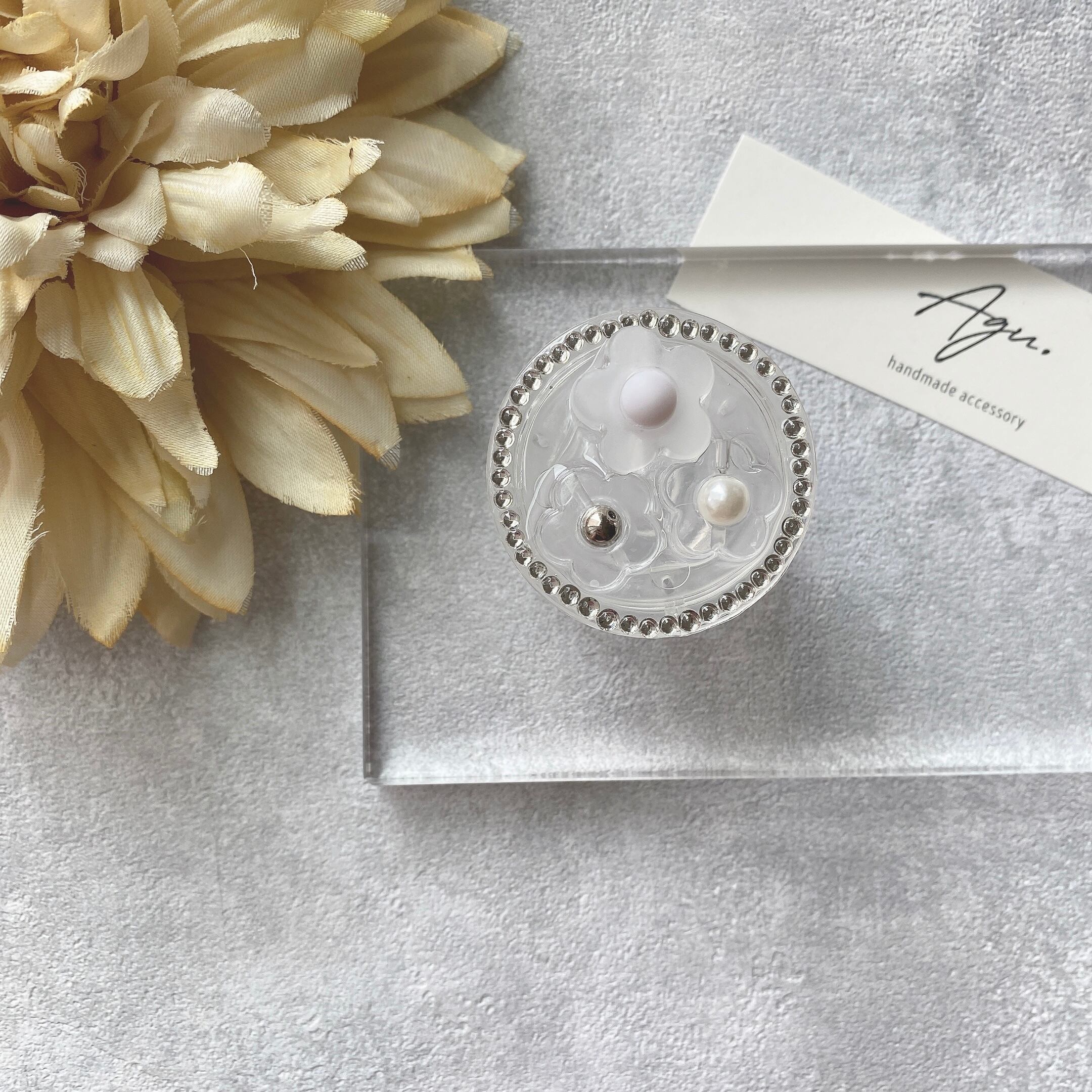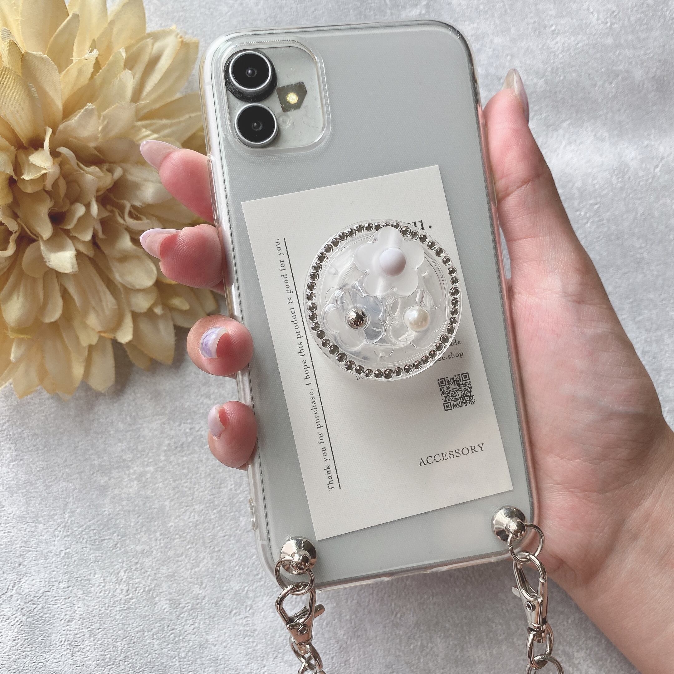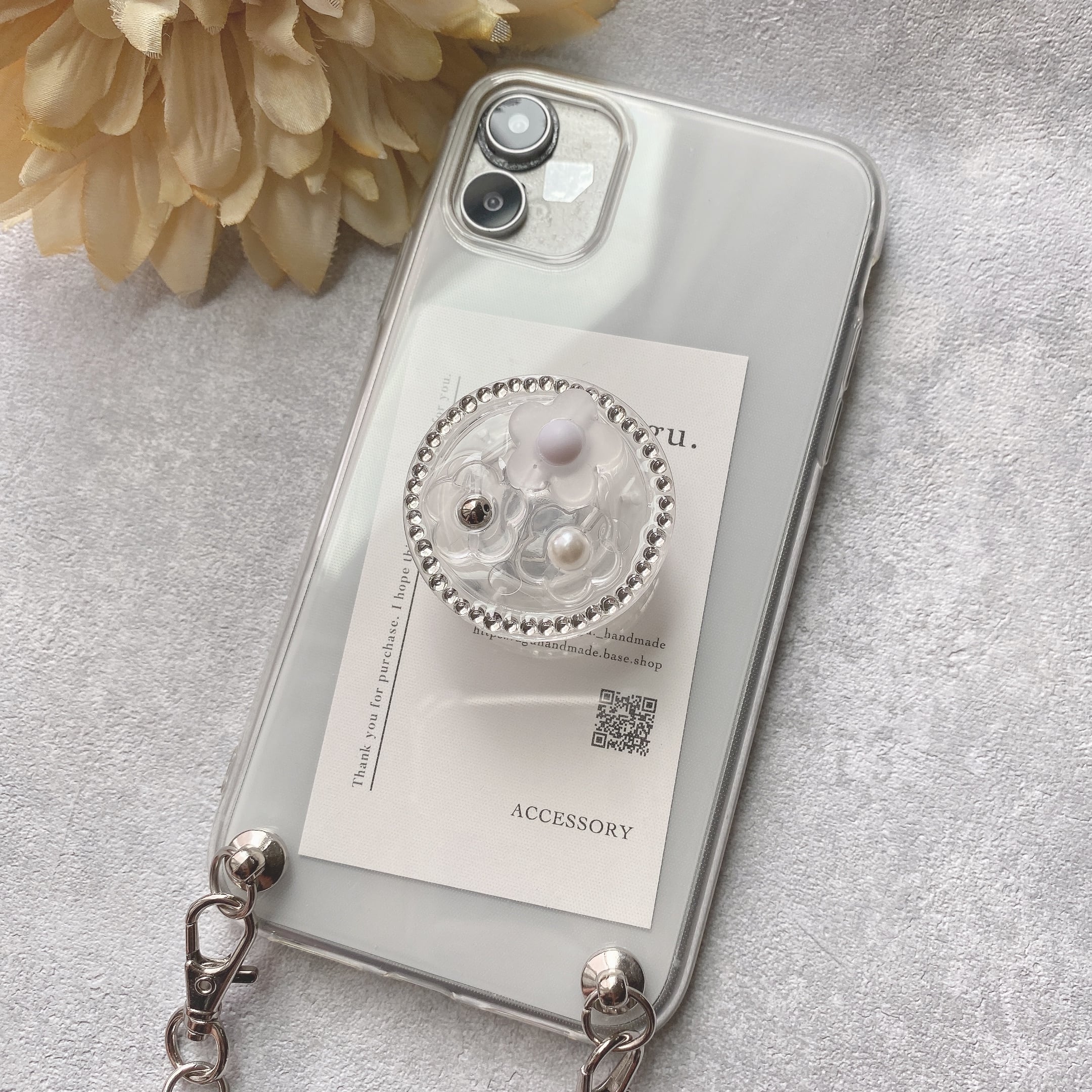 【iPhone以外】すりガラスフラワーのグリップトックケース(グレー)