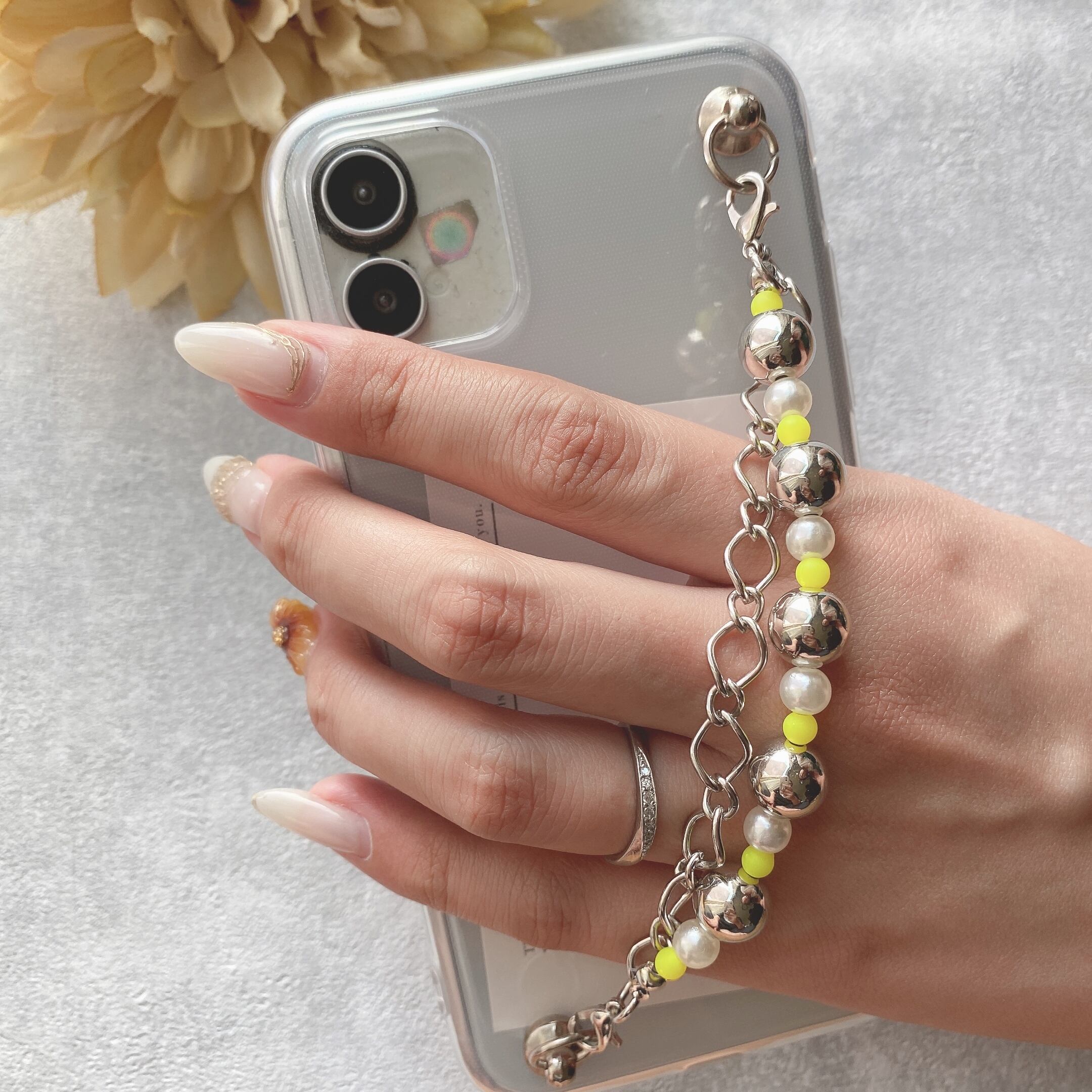 【iPhone】ネオンシルバーの2連キーリングハンガー(イエロー)