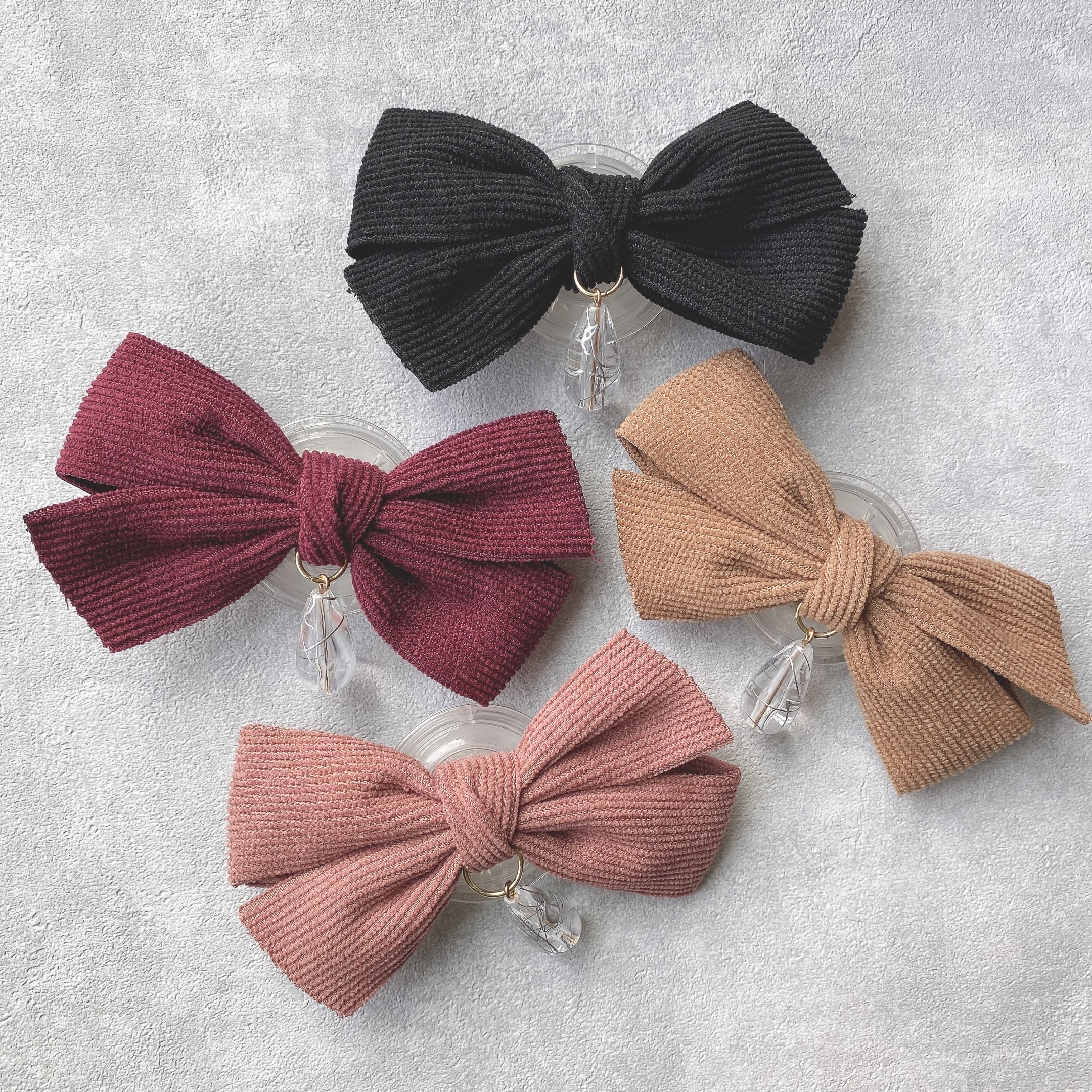 【iPhone以外】BIGリボンのコーデュロイグリップトックケース