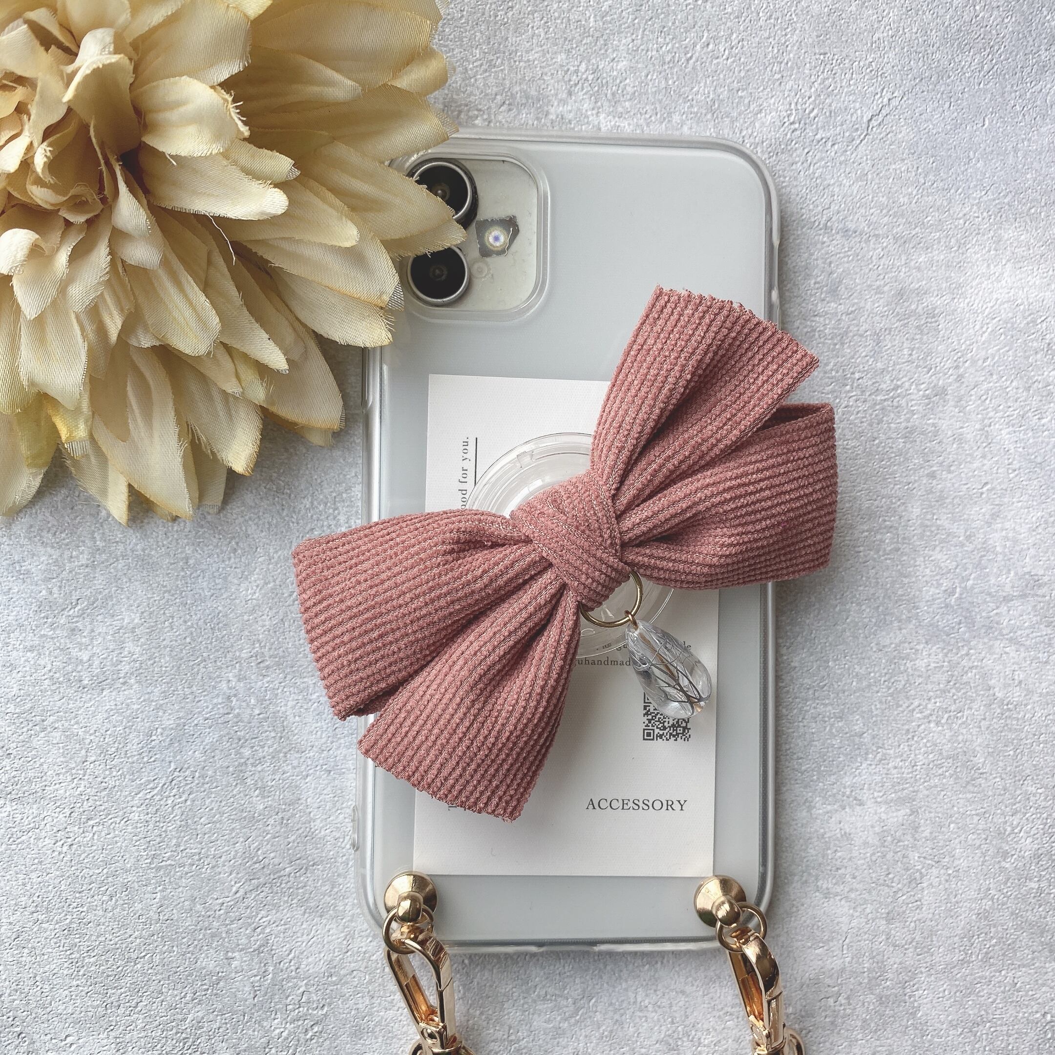 【iPhone】BIGリボンのコーデュロイグリップトックケース