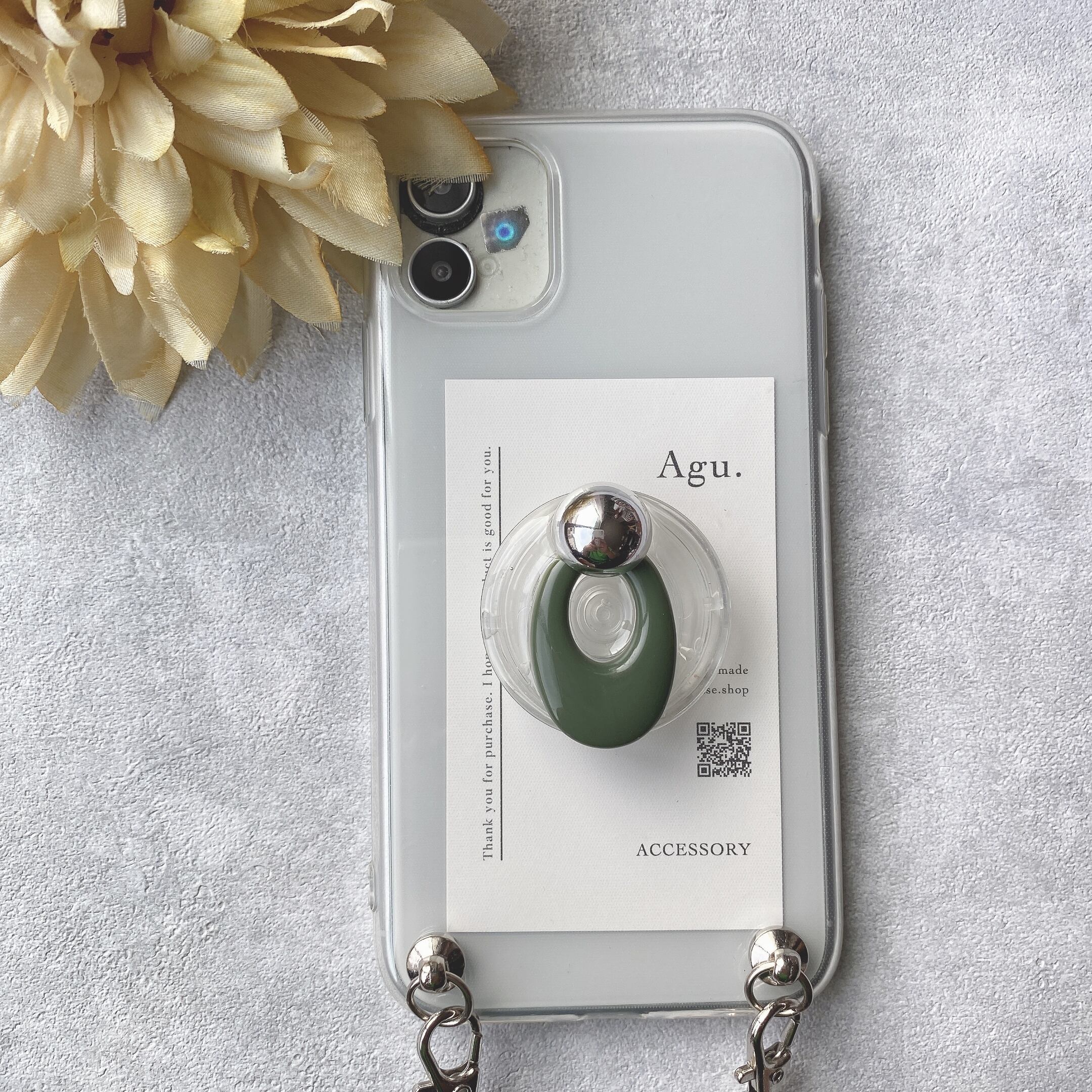 【iPhone以外】くすみカラーの大人っぽグリップトックケース(カーキ)
