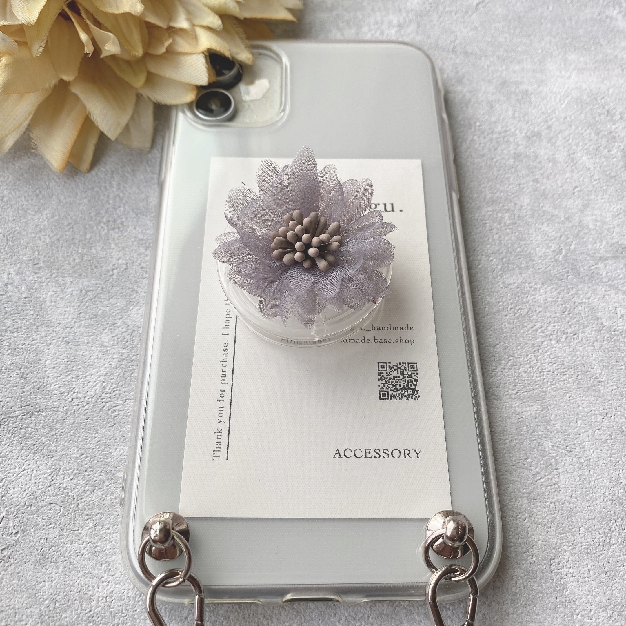 【iPhone以外】チュールお花のグリップトックケース(くすみグレー)