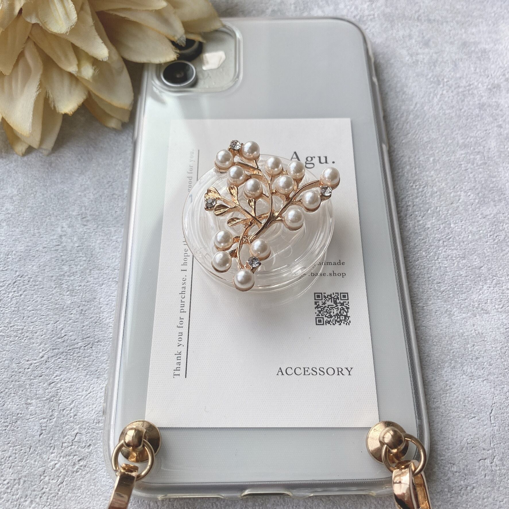 【iPhone以外】つぶつぶパールのグリップトックケース