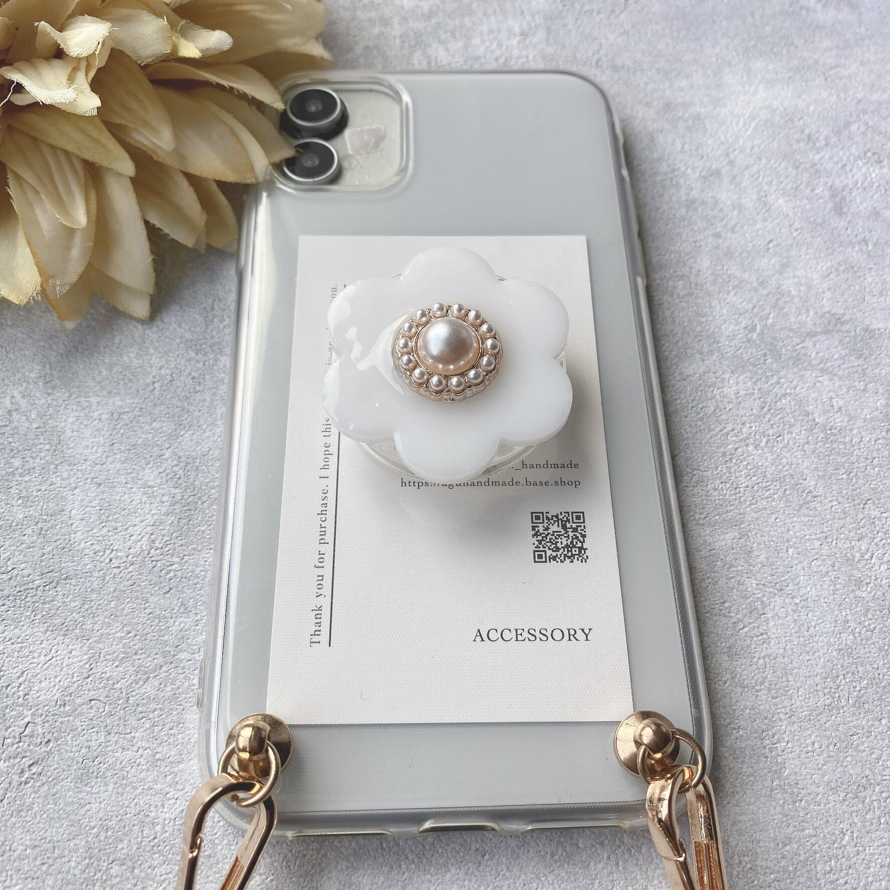 【iPhone】ホワイトフラワーのグリップトックケース