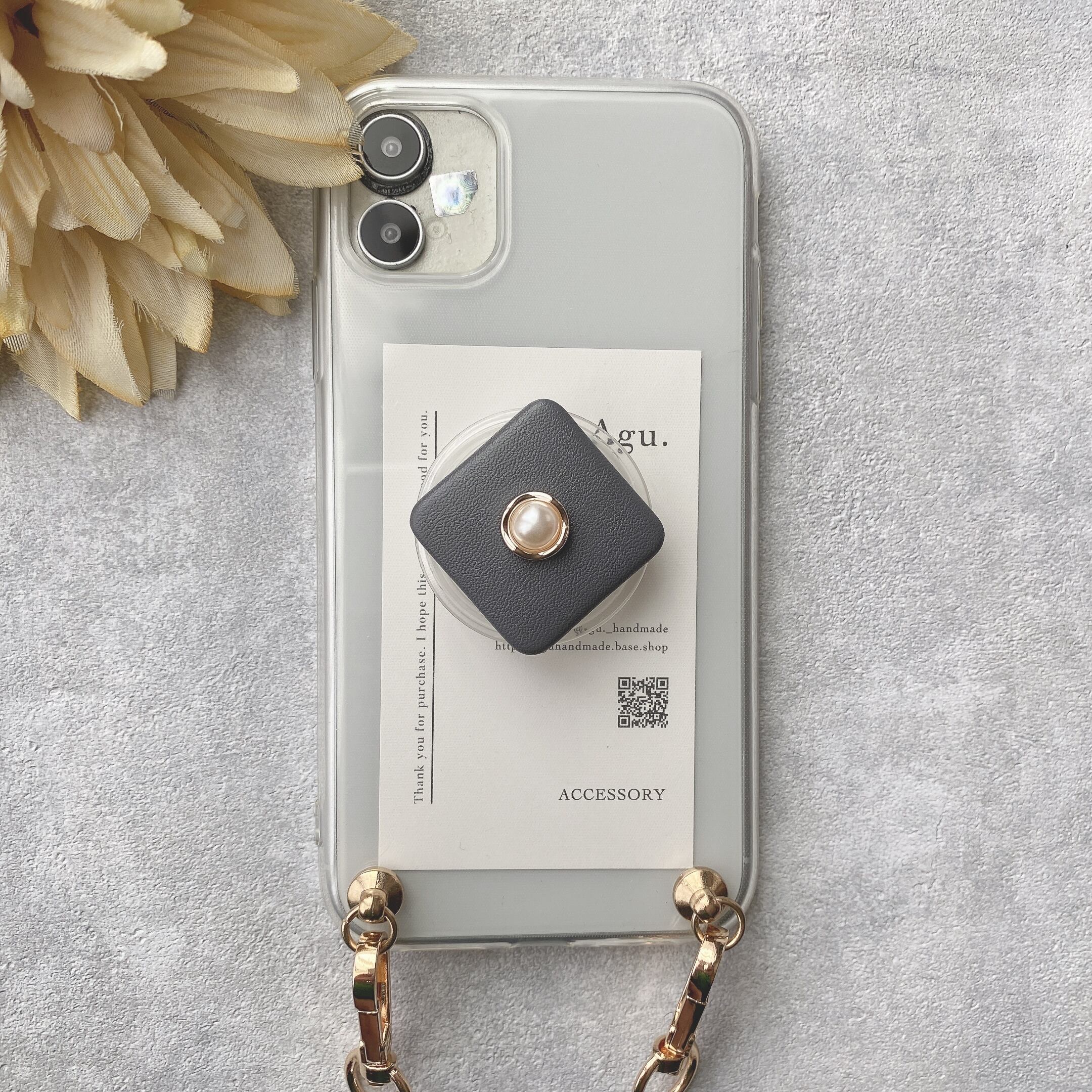 【iPhone以外】スクエアレザーのニュアンスグリップトックケース(グレー)
