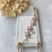 【iPhone】パールフラワーのキーリングハンガー(ピンクベージュ)