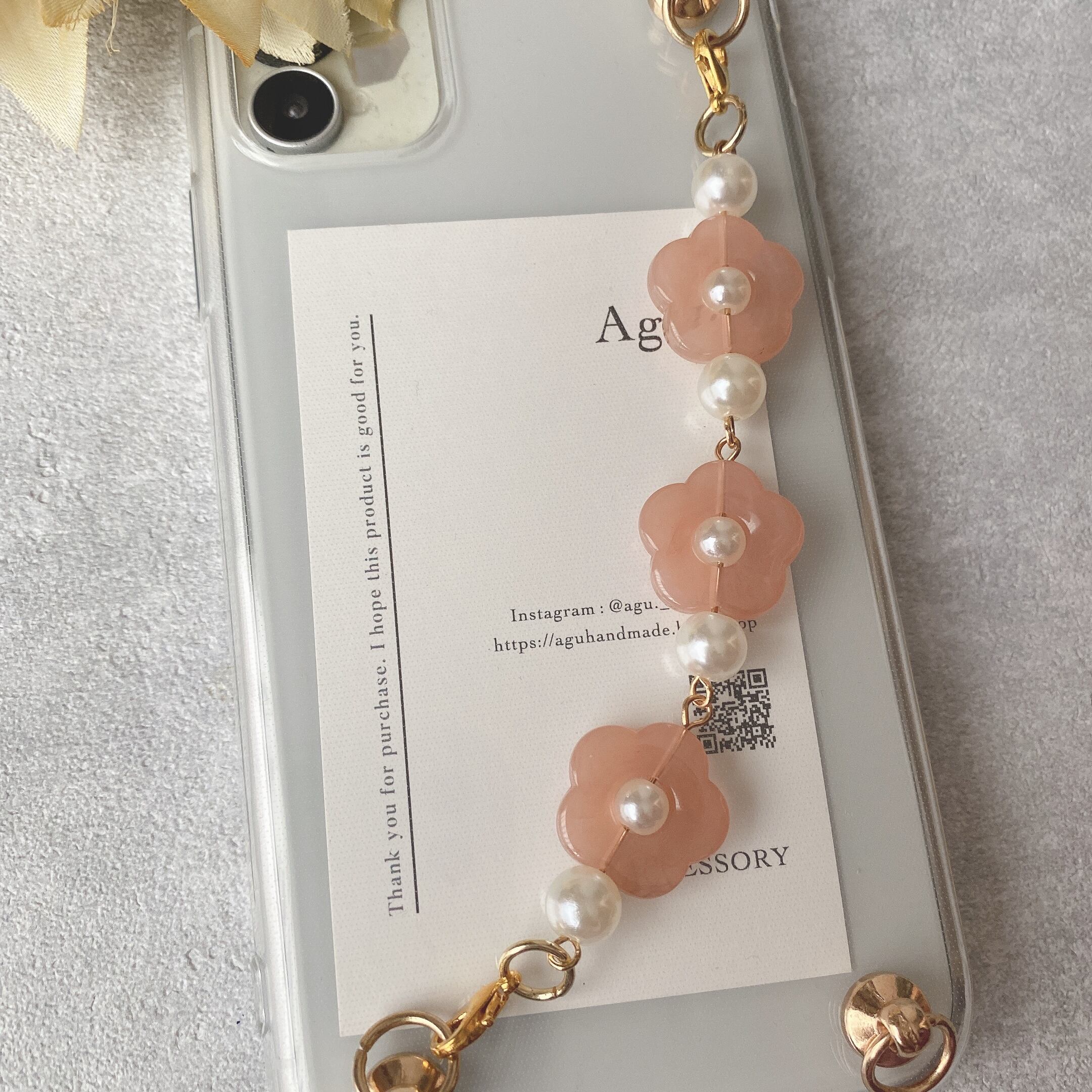 【iPhone以外】ミニフラワーのキーリングハンガー(サーモンピンク)