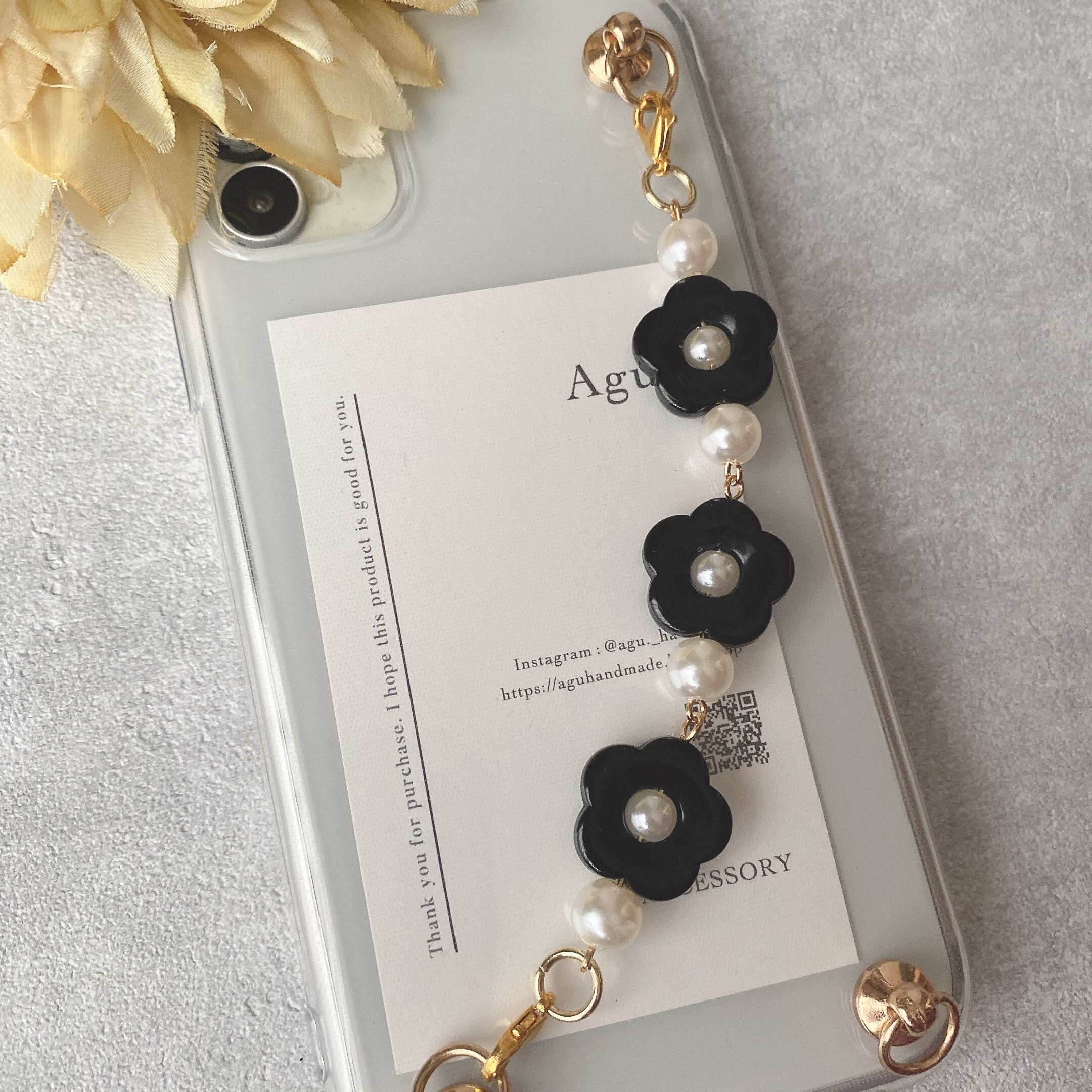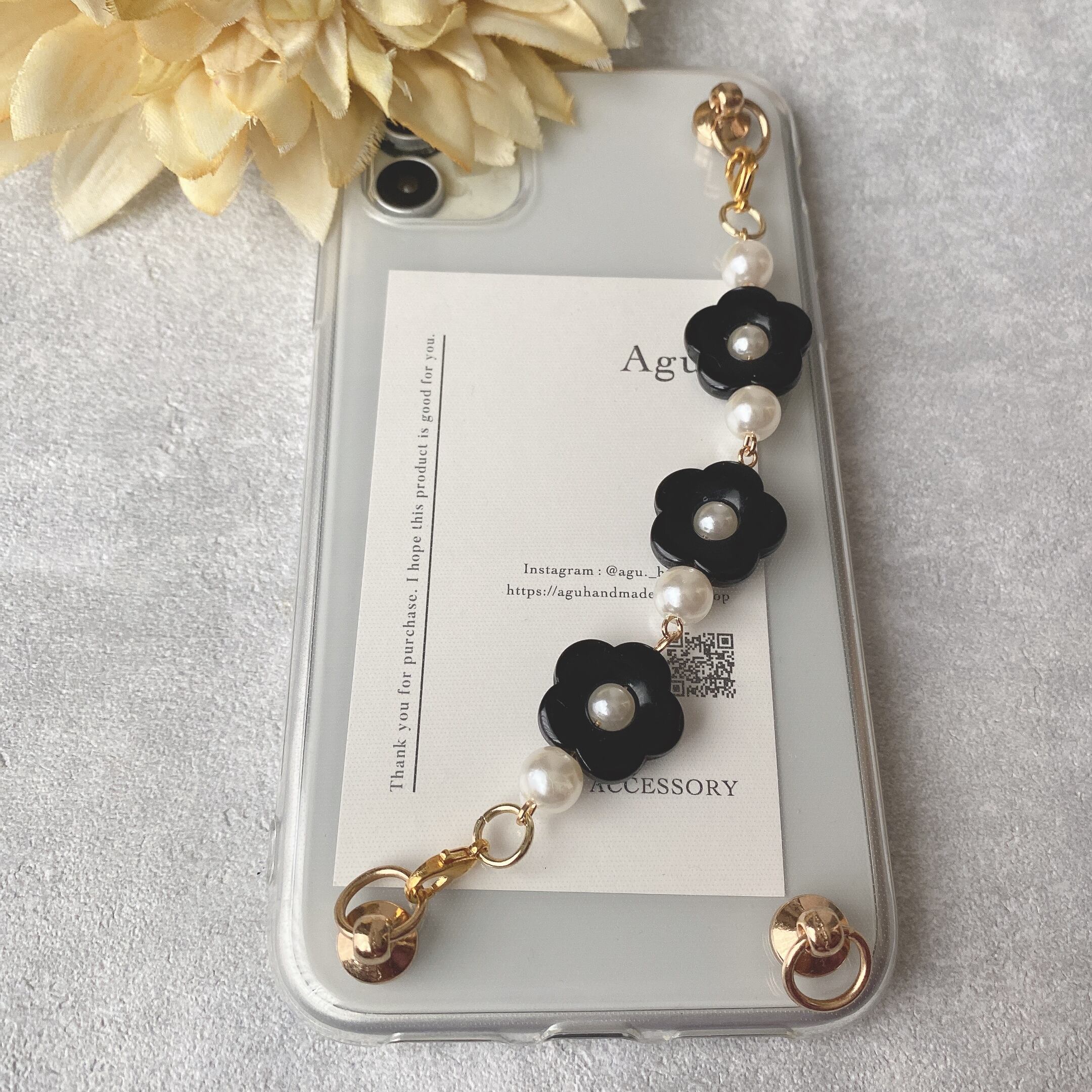 【iPhone】ミニフラワーのキーリングハンガー(ブラック)