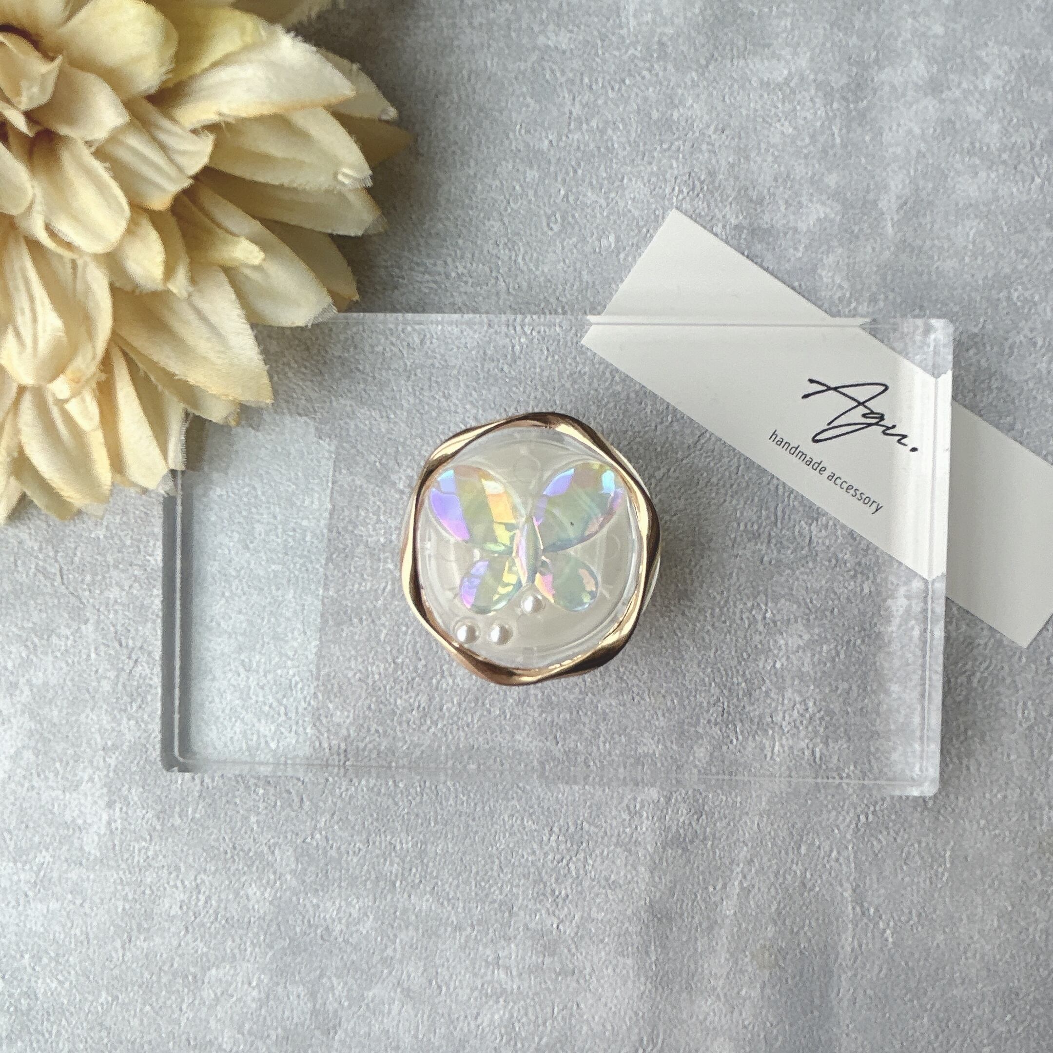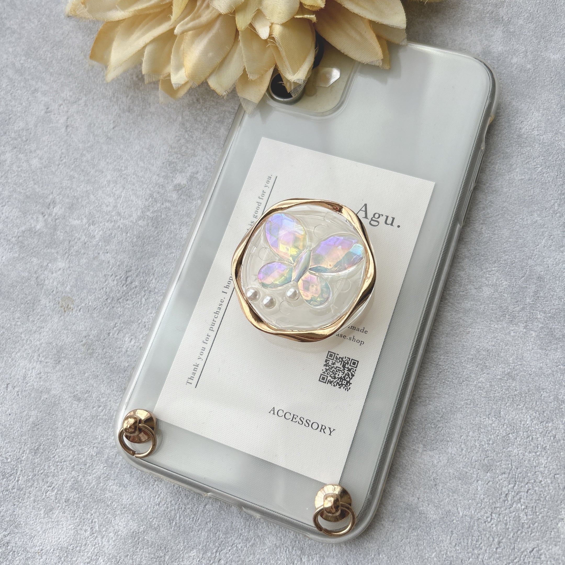 【iPhone以外】オーロラ蝶のグリップトックケース(ゴールド)
