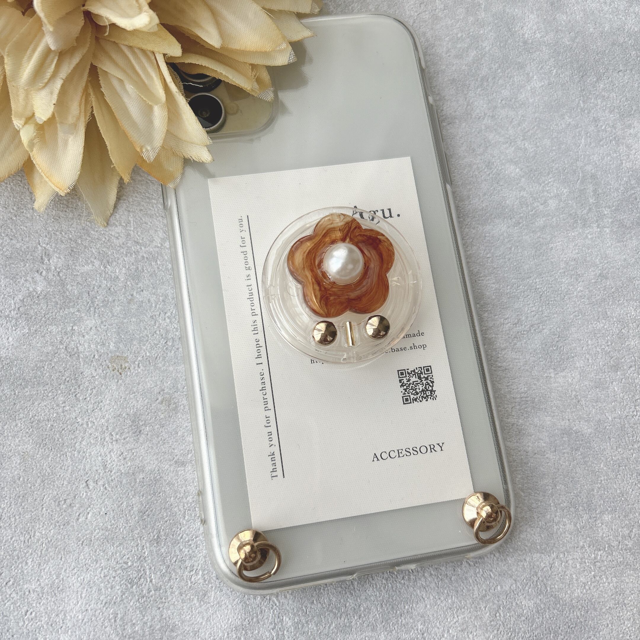 【iPhone以外】韓国っぽお花のグリップトックケース(べっ甲)