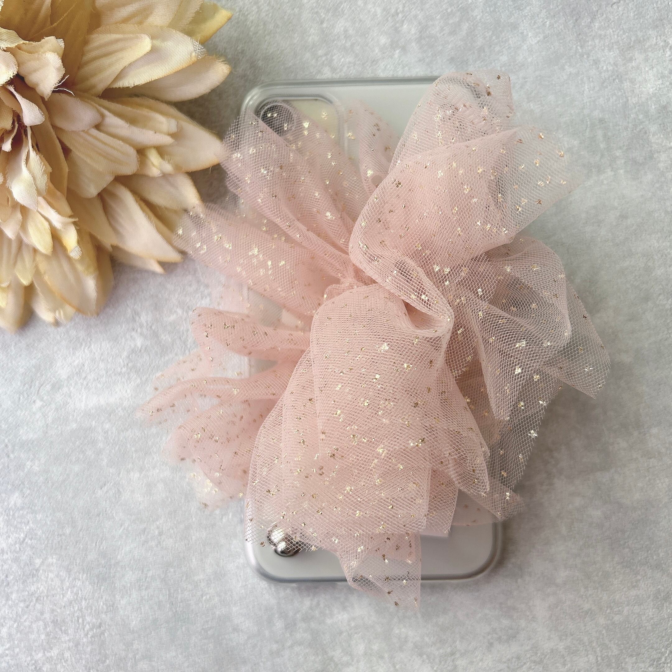 【iPhone以外】チュールリボンのキーリングハンガー(くすみピンク)