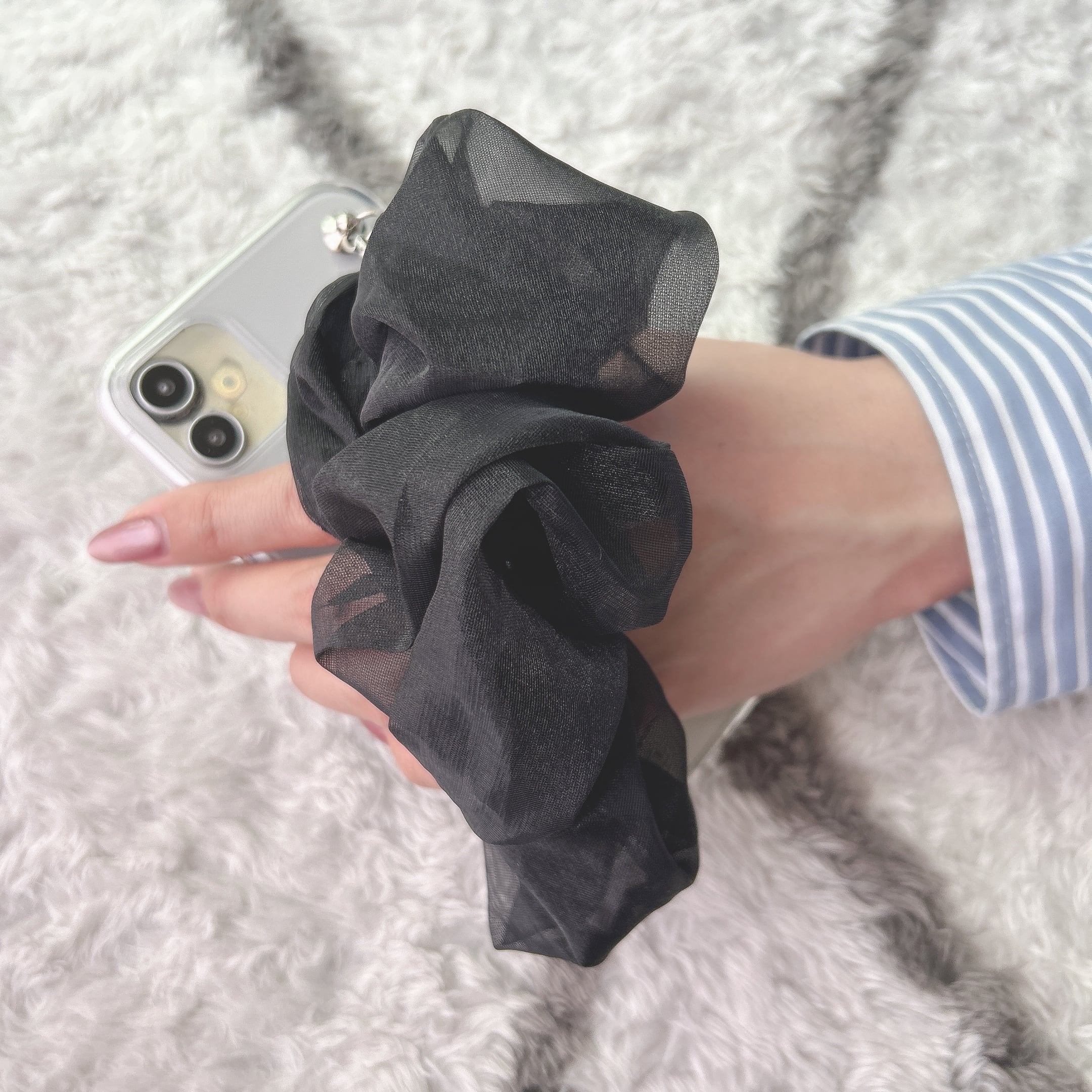 【iPhone】くしゅくしゅリボンのキーリングハンガー(ブラック)